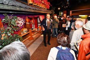 展示の2基の実物を見ながら説明を聞き、京都祇園祭りに劣らない山車の