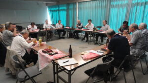 現役時代の仕事内容や近況を報告し合いました。平均年齢が76歳超えの湘南支部において
