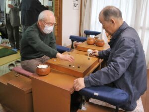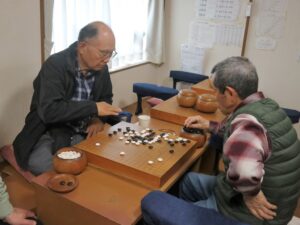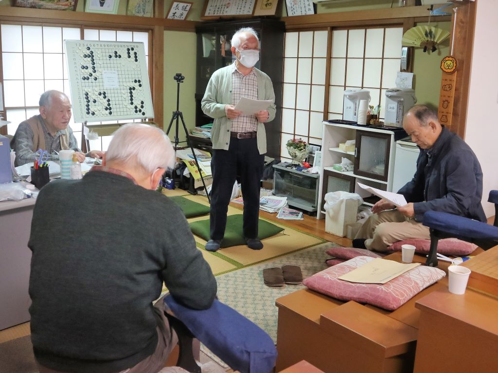 囲碁クラブも他と同様高齢化が進み参加者が少なくなつたが、クラブ会員のうち最高の高齢者は92歳でいつもの例会には元気よく参加して頂いている。むしろ高齢者の方が参加率は高い。しかし今回の優勝は比較的若手の原四段となった。同氏は研究熱心でその熱意が実り、上達されたのだと思います。また久しぶりに参加頂いた土屋四段は、穏やかな囲碁であるが、好成績であった。囲碁は頭の運動であり、ボケ防止にもなり、老後の楽しみとして、いつまでも続けていきたいものです。