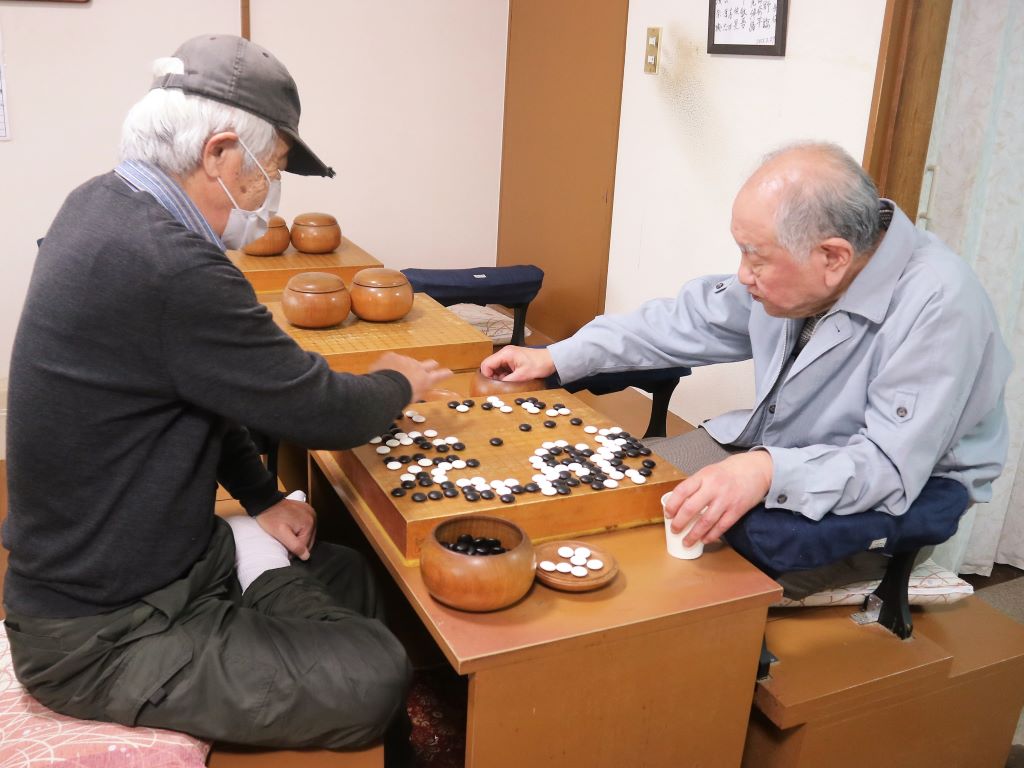 囲碁クラブも他と同様高齢化が進み参加者が少なくなつたが、クラブ会員のうち最高の高齢者は92歳でいつもの例会には元気よく参加して頂いている。むしろ高齢者の方が参加率は高い。しかし今回の優勝は比較的若手の原四段となった。同氏は研究熱心でその熱意が実り、上達されたのだと思います。また久しぶりに参加頂いた土屋四段は、穏やかな囲碁であるが、好成績であった。囲碁は頭の運動であり、ボケ防止にもなり、老後の楽しみとして、いつまでも続けていきたいものです。