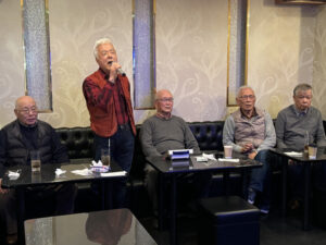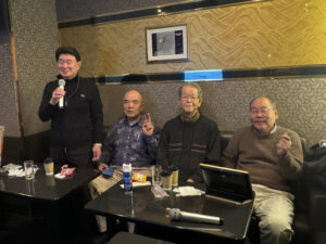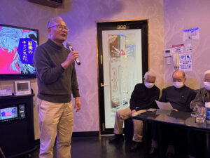 今年度の最終回となったカラオケクラブ例会は、みんな元気に、自己責任での感染対策を行いながら22名の参加での開催となりました。はじめに増田世話役より今後の日程連絡があり、また浦田支部長より松愛会全体の活動の現状報告がありました。そして恒例となった5名の持ち歌披露の発表と全員集合の写真撮影がありました。その後、今回は5部屋(301・302・303・308・309号室)に分かれて元気いっぱい存分に唄いました。本日の持ち歌披露は、席順に長谷川さん・杉山さん・井川さん・南野さん・田辺さんの5名でした。尚、次回(4/3)例会で予定していたクラブ総会&カラオケ大会は4/17(水)に変更することになりました。