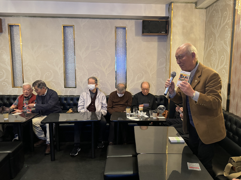 今年度の初めてのカラオケクラブ例会は、外は雨天、桜はまだ1~2分咲き、みんな元気に、自己責任での感染対策を行いながら18名の参加での開催となりました。はじめに増田世話役より次回例会のクラブ総会とカラオケ大会の開催案内の連絡があり、また石原副支部長より松愛会支部活動の報告がありました。そして五十嵐さんより来月開催のフォトクラブ作品展(5/14~5/19)についての案内がありました。恒例となった5名の持ち歌披露の発表と全員集合の写真撮影がありました。その後、今回は4部屋(301・302・303・308号室)に分かれて元気いっぱい存分に唄いました。本日の持ち歌披露は、席順に阿部さん・松本さん・中代さん・石原さん・増田さんの5名でした。尚、次回(4/17)例会はクラブ総会&カラオケ大会が開催されます。全員の参加をお願い致します。
