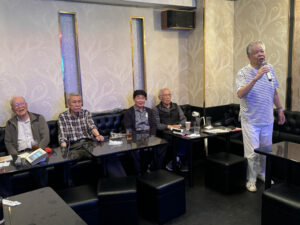 ゴールデンウイーク、朝から冷たい雨で参加者数が心配でしたが、今回も20名の歌仲間が集まり盛大に開催されました。はじめに増田世話役より前回のクラブ総会とカラオケ大会の御礼の挨拶があり、石原副支部長より支部総会(6/1土曜)参加案内がありました。また、当クラブメンバー6名出展のフォトクラブ写真展(5/14~5/19)開催についてクラブ世話役の田辺さんより来場案内がありました。そして3人の持ち歌披露の発表と支部総会締め歌練習がありました。そして全員集合の写真撮影の後、今回も4部屋(301・302・303・308号室)に分かれて元気いっぱい存分に唄いました。本日の持ち歌披露は松富さん・五十嵐さん・西村さんの3名でした。また支部総会〆歌関東一本〆を(駒井さん・五十嵐さん・日塔さんの3人メドレー)で練習しました。また、当クラブで長く活躍されクラブ発起人でもあり闘病中の高橋正さんが昨日ご逝去の報告がありました。ご冥福をお祈りいたします。