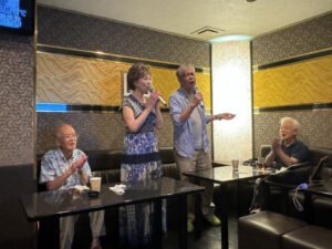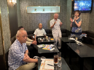 9月 4日(水)カラオケクラブ例会を開催しました。8月は夏休みで久しぶりの例会となり、みんな元気に再会、いつも通り『カラオケ館・藤沢南口店』に集まり参加者23名。盛大に開催されました。予定参加者が集まり増田世話役の挨拶と石原副支部長より『湘南秋の集い』の案内がありました。そして恒例となった近況報告と持ち歌披露(5名)が終わったところで全員集合の写真撮影を行い、5部屋(301・302・303・328号室と318号室は打合せ室と歌謡ショー)に分かれ何時もの例会、今回は途中で『湘南秋の集い』メインゲスト『歌手 八木裕子さん』との打合せがあり、その後、八木裕子さんには特別参加頂き、急遽大部屋318号室に全員集まり約30分の歌謡ショーをして頂きその後、各部屋に回りみんなと一緒に唄って頂きました。本日の近況報告と歌披露は中田さん-杉山さん・中代さん・五十嵐さん・松本さんの5名でした。次回例会は、9月 18日(水)12:00~17時開催(11時から入室練習可能)となります。(注意)本年度より例会日は毎月第1・第3水曜日(固定:祭日は休み)とします。また今月より参加費値上げで1500円となりました。