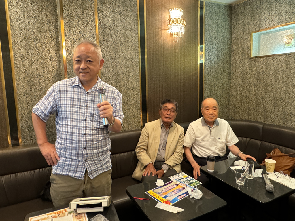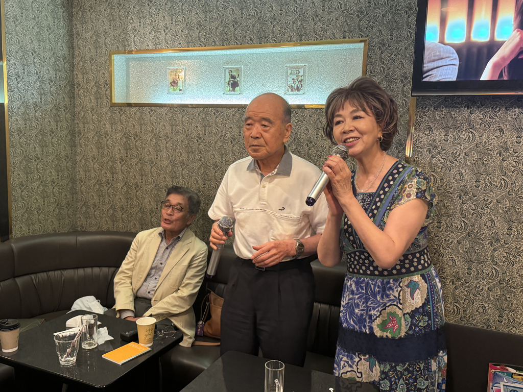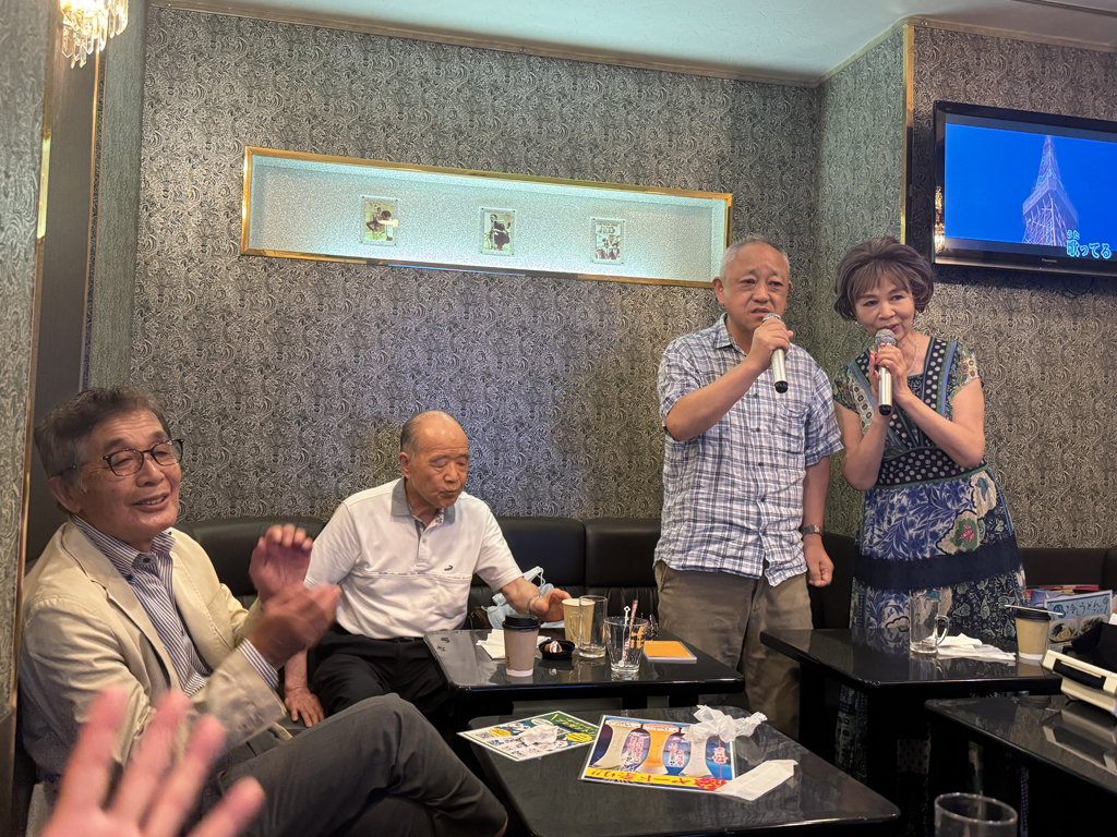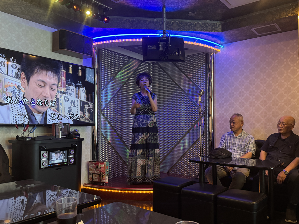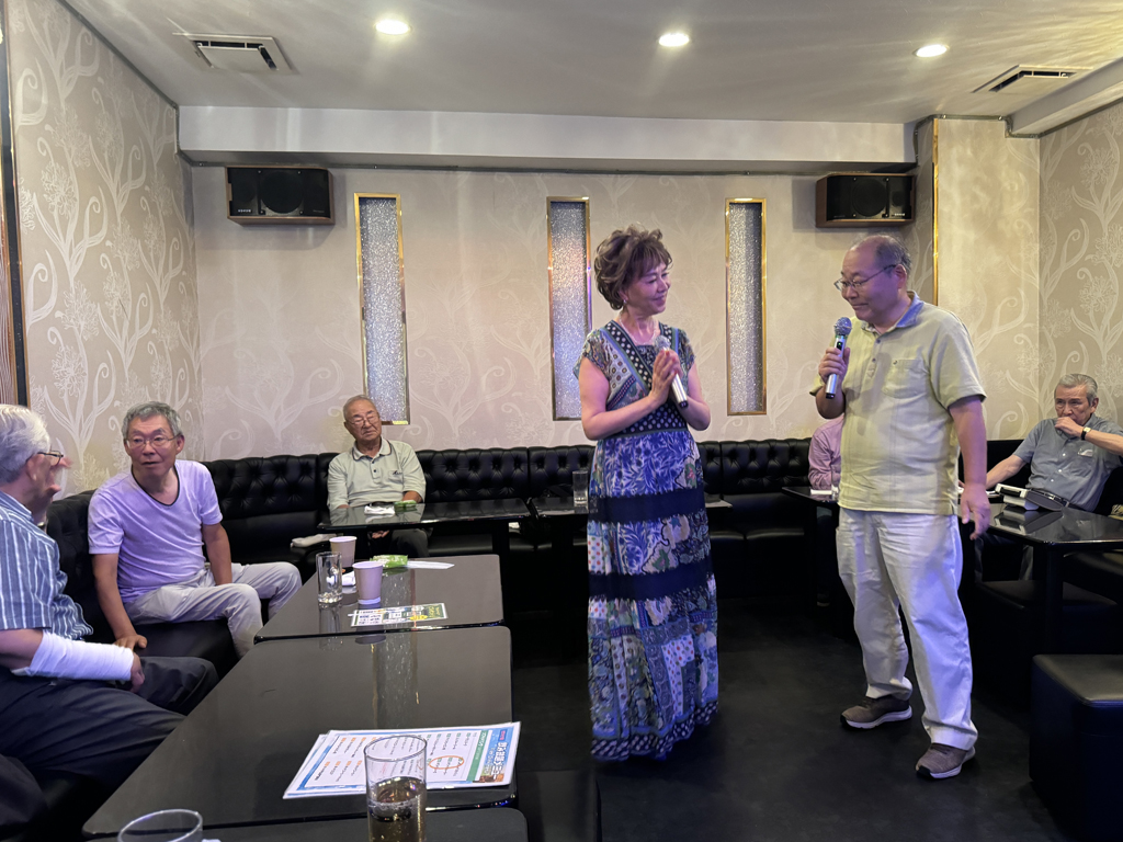 9月 4日(水)カラオケクラブ例会を開催しました。8月は夏休みで久しぶりの例会となり、みんな元気に再会、いつも通り『カラオケ館・藤沢南口店』に集まり参加者23名。盛大に開催されました。予定参加者が集まり増田世話役の挨拶と石原副支部長より『湘南秋の集い』の案内がありました。そして恒例となった近況報告と持ち歌披露(5名)が終わったところで全員集合の写真撮影を行い、5部屋(301・302・303・328号室と318号室は打合せ室と歌謡ショー)に分かれ何時もの例会、今回は途中で『湘南秋の集い』メインゲスト『歌手 八木裕子さん』との打合せがあり、その後、八木裕子さんには特別参加頂き、急遽大部屋318号室に全員集まり約30分の歌謡ショーをして頂きその後、各部屋に回りみんなと一緒に唄って頂きました。本日の近況報告と歌披露は中田さん-杉山さん・中代さん・五十嵐さん・松本さんの5名でした。次回例会は、9月 18日(水)12:00~17時開催(11時から入室練習可能)となります。(注意)本年度より例会日は毎月第1・第3水曜日(固定:祭日は休み)とします。また今月より参加費値上げで1500円となりました。