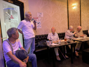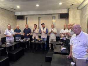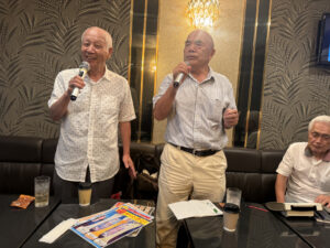 10月 2日(水)カラオケクラブ例会を開催しました。10月に入りまだまだ残暑の続く中の例会でしたが、みんな元気に、いつも通り楽しく『カラオケ館・藤沢南口店』に集まり参加者17名で盛大に開催されました。予定参加者が302号室に集まり部屋割りのあと増田世話役の挨拶と石原副支部長より今週10月4日(金)に迫った『湘南秋の集い』の概要案内がありました。そして恒例の4名の近況所感と持ち歌披露があり湘南の集い』全員合唱曲里の秋・これから音頭』を全員で合唱そして全員の写真撮影を行い、4部屋(301・302・303・328)に分かれ何時もの例会となりました、本日の所感と歌披露は席順に駒井さん-松富さん・大字さん・安達さんでした。次回例会は、10月 16日(水)12:00~17時開催(11時から入室練習可能)となります。(注意)本年度より例会日は毎月第1・第3水曜日(固定:祭日は休み)とします。また9月より参加費は1500円となりました。