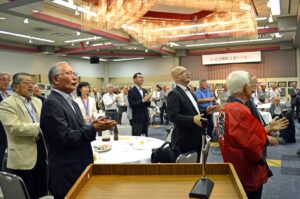 楽しい時間を、恒例の全員合唱では、「関東一本締め」を「湘南一本締め」として歌い、