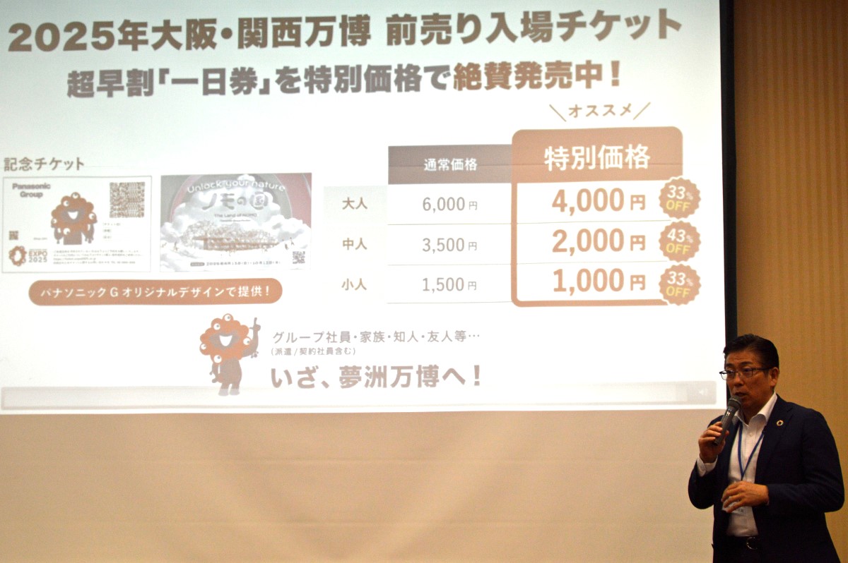 特に、片倉支店長から大阪万博のPRビデオと説明の中で、本年9月まで前売り入場券購入は