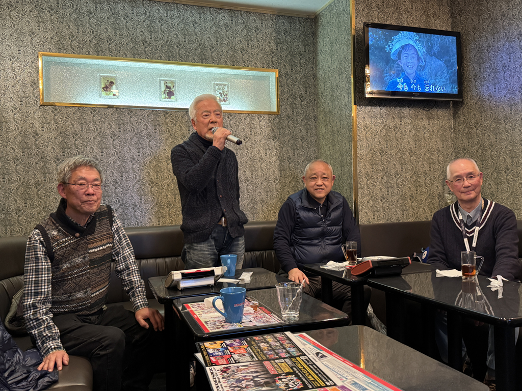 3月 19日(水)カラオケクラブ例会を開催しました。あいにく雨模様の悪天候でしたが、みんな元気に『カラオケ館・藤沢駅南口店』に集まり参加者19名で盛大に開催されました。予定参加者は302号室で受付と部屋割りのくじ引きを行い、全員が集まったところで開会となり、増田世話役より4/16のクラブ総会とカラオケ大会の案内と4/2(水)の春休み休会案内がありました。また石原副支部長より支部の活動状況報告、そして恒例の輪番による4名メンバーの近況報告と持ち歌披露が行われ、全員での写真撮影の後、4部屋(301号室・302号室・303号室・328号室)に分かれて17時過ぎまでみんな楽しく、元気に唄いました。本日の所感と歌披露は席順に五十嵐さん・田辺さん・松本さん・石原さんでした。次回例会はクラブ総会とカラオケ大会で、4月 16日(水)12:00~17時開催(11時から入室可能練習可能)となります。注)4/2(水)は春休み特別料金で休会となります。(注意)本年度より例会日は毎月第1・第3水曜日(固定:祭日は休み)とします。また昨年9月より参加費は1500円となりました。(写真はクリックすると大画面になります)