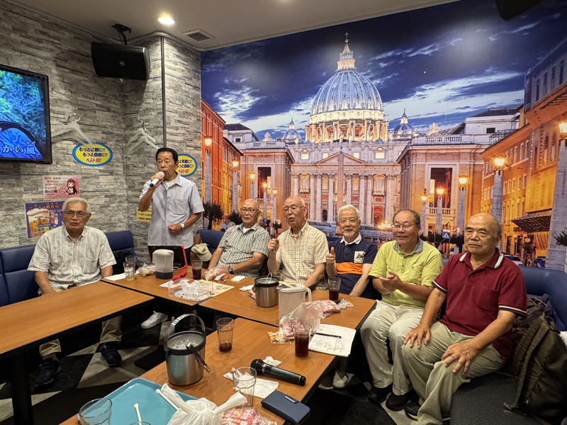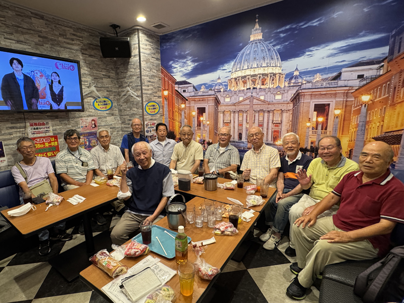 8月6日(水)カラオケクラブは有志による夏休み暑気払い特別例会(カラオケ館での通常例会は夏休み)を藤沢駅北口『カラオケヒットパレード ベスト10』でカラオケ大好き12名が参加して開催しました。参加者は12時『ベスト10;14号室の大部屋』に集り受付けを済ませ、飲み物と菓子を頂きながら今回限りの新しい会場で約1時間の全員懇談したあと部屋割りくじで2部屋(14号室7名:15号室5名)に分かれて17時過ぎまでみんな楽しく、元気に唄いました。