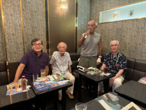 9月17日(水)、カラオケクラブ9月度(2)例会を開催しました。みんな元気に『カラオケ館・藤沢駅南口店』に集合、19名もの参加で盛大に開催されました。参加者は何時もの302号室で受付と部屋割りのくじ引きを済ませ参加予定者全員が集まったところで、石原世話役の挨拶で①福田さんが正式入会との紹介と本人の挨拶がありました。又②カラオケ館30周年で記念割引で9月・10月は100円引適用との紹介がありました。そして野鶴支部役員より10月18日(土)『湘南秋の集い』紹介と本日参加者14名の参加申込の確認がなされました。又バス旅行12月1日(月)の案内もありました。そして4人の近況所感と持ち歌披露があり全員の集合写真撮影の後、いつも通り4部屋(301号室・302号室・303号室・328号室)に分かれて17時過ぎまでみんな楽しく、元気に唄いました。本日の所感と歌披露は席順に中代さん・松富さん・池ノ谷さん・増田さんでした。次回例会は、10月 1日(水)12:00~17時開催(11時から入室練習可能)となります。(注意)例会日は毎月第1・第3水曜日(固定:祭日は休み)。また参加費は本年度より1600円