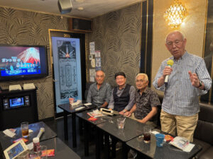 10月1日(水)雨模様の中、カラオケクラブ10月度(1)例会を開催しました。みんな元気に『カラオケ館・藤沢駅南口店』に集合、風邪等での欠席者(4名)があって15名の参加で開催となりました。参加者は何時もの302号室で受付と部屋割りのくじ引きを済ませ参加予定者全員が集まったところで、石原世話役の挨拶で①次回例会より飲み物はセルフサービスに変更されるとのこと。②カラオケ大会は12月3日(水)忘年会を兼ねて実施したいとの話がありました。そして野鶴支部役員より10月18日(土)湘南秋の集い』とバス旅行12月1日(月)の詳細案内もありました。そして4人の近況所感と持ち歌披露があり全員の集合写真撮影の後、3部屋(301号室・302号室・303号室)に5名ずつ分かれて17時過ぎまでみんな楽しく、元気に唄いました本日の所感と歌披露は席順に蒔野さん・雨宮さん・西村さん・長谷川さんでした。次回例会は、10月 15日(水)12:00~17時開催(11時から入室練習可能)となります(注意)例会日は毎月第1・第3水曜日(固定:祭日は休み)。また参加費は本年度より1600円