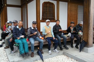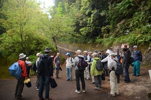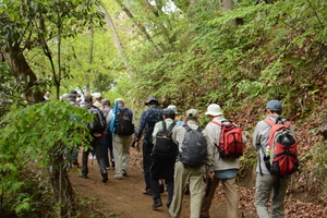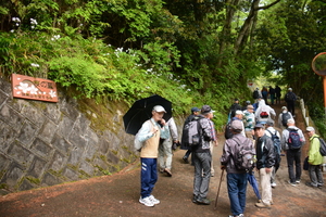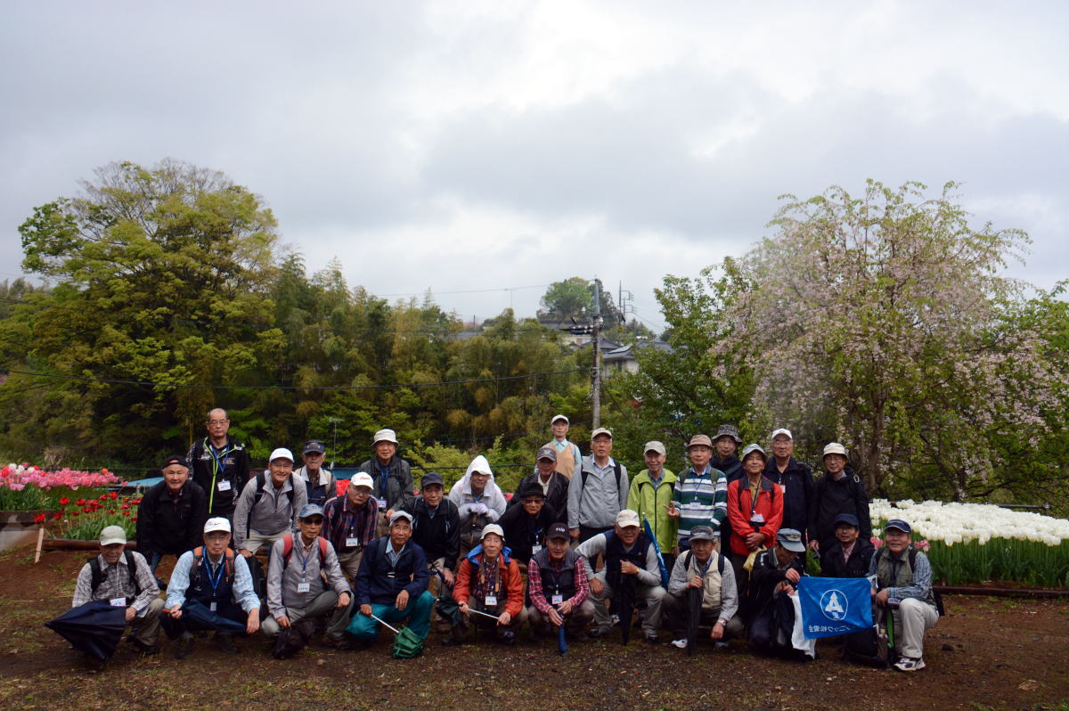 平成時代最後の歩こう会は、あいにく雨の中で始まりました。二ツ塚のミーティング、千村配水場の八重桜鑑賞、チューリップ寺さらに昼食休憩後の白山神社、頭高山登山口まで雨が強弱を繰り返しながら降っていました。雨の予想と登山道の状態が読めなかったため、登山と帰路の要望を聞き26名が登山を続行、4名が帰路に着くことになりました。