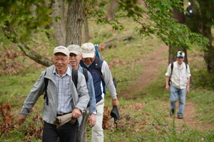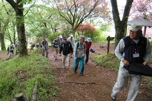 (7)頭高山登山口(登山組と帰路組の選択)八重桜の里へ(頂上目前の休憩地点)