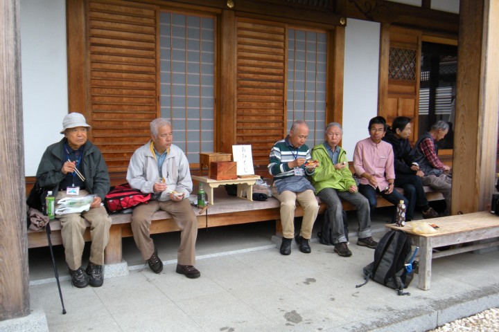(7)頭高山登山口(登山組と帰路組の選択)八重桜の里へ(頂上目前の休憩地点)
