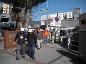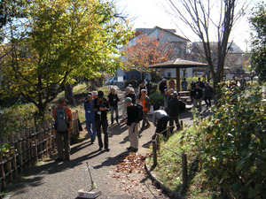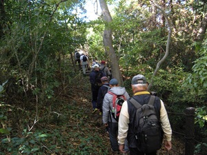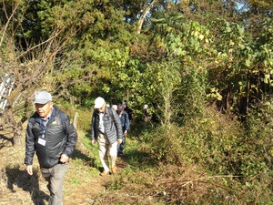 | 起床時はまだ肌寒さを感じていましたが、小田急秦野駅に9時頃着いた時は気温が急上昇してきて暖かな秋晴れの中、36名が集まり気持ちの良い歩こう会を実施することができました。関東三大稲荷と言われている白笹稲荷神社は今までトイレ休憩で立ち寄っていただけでしたが、今回秦野市在住佐野さんの口添えで大学の後輩でもある女性宮司さんを紹介して頂き、本殿に上り神社の歴史や天井画の説明を拝聴しました。稲荷神社の意味を再確認する知識が得られました。台風15号がもたらした強風はミカン園でも見られ、実を付けたまま倒れた木もまだ残っていました。ミカンの木の寿命は50年ほどらしいですが、成長すると一本の木で1000個位の実を付けるそうです。歩こう会で訪れてミカン狩りしても、殆ど減っていないように見えるのも納得しました。毎年のことながら、帰路は往路に比べて背中にリュックの重みを感じる歩こう会でした。