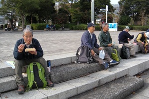 - 臨港パークで海と船とベイブリッジを眺めながらの昼食