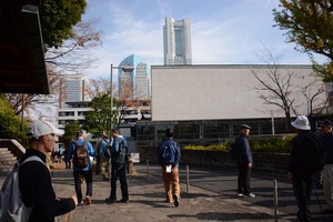 | 2019年最後の歩こう会は、天気にも恵まれ49名(今年最多)の参加者で横浜みなとみらいで実施できました。行程のコースを変更し最初に急傾斜の紅葉坂を上り横浜能楽堂へ行きました。以前見学した久良岐能楽堂とは違った趣があり、観客席の多さには圧倒されました。三菱みなとみらい技術館では、三菱重工の蓄積してきた造船,無人軌道車,深海潜水艇,衛星打上げ用H2Aロケット,小型ジェット機MRJ等幅広い先端技術に驚かされました。また最後に見学した海上保安資料館での北朝鮮の工作船では、当時何度も繰り返し報道されたニュース映像が甦ってきて、恐ろしい現実は未だに身近に存在していることを改めて思い知らされました。横浜みなとみらい地区は、能楽堂や赤レンガ倉庫のような歴史的な建造物とランドマークタワーやインターコンチネンタルホテルのような現代高層建築物が違和感なくマッチした不思議な魅力に溢れた町でした。