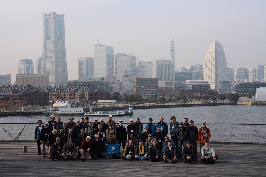 - みなとみらいをバックに2019年歩こう会最後の集合写真