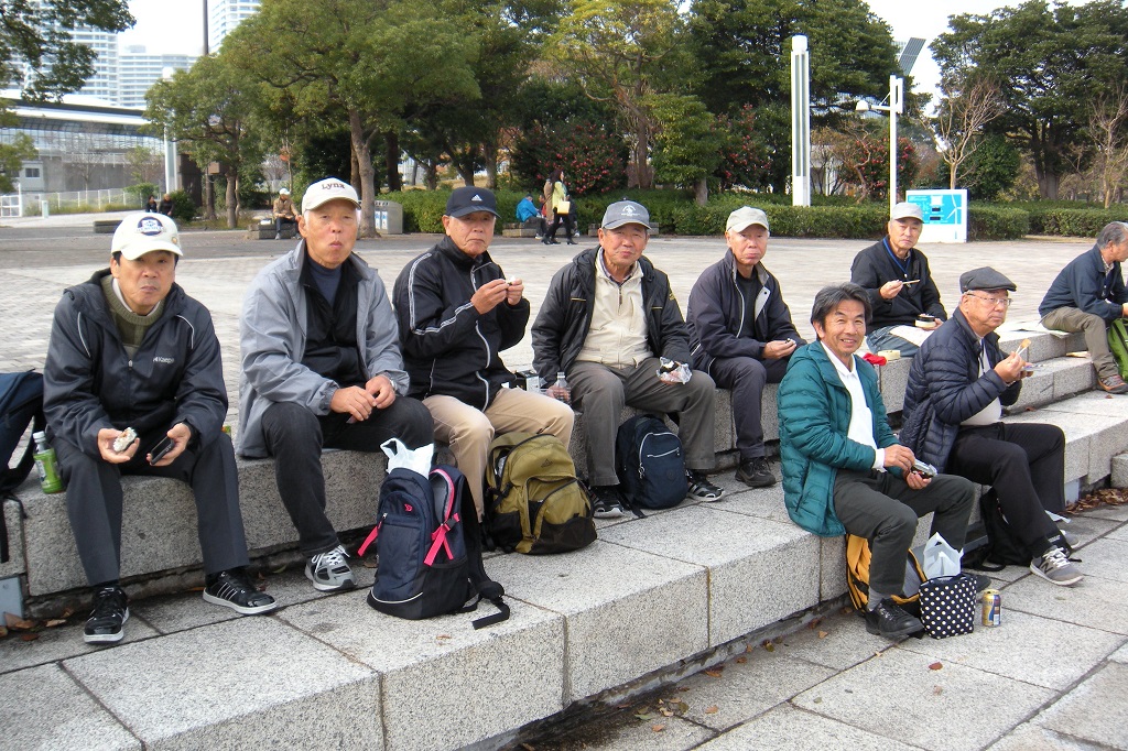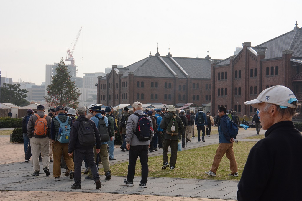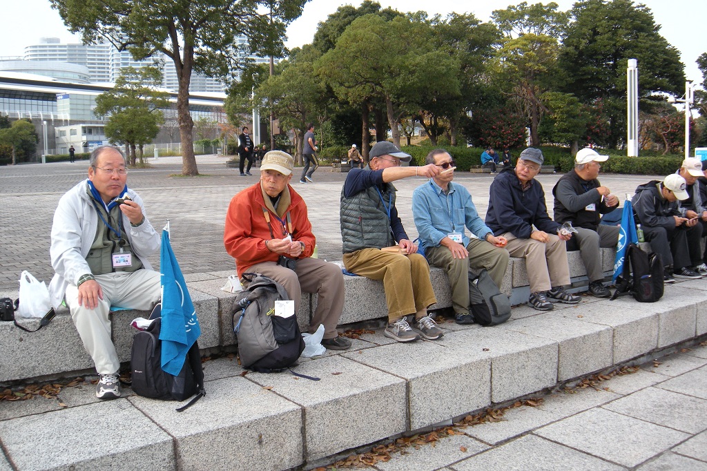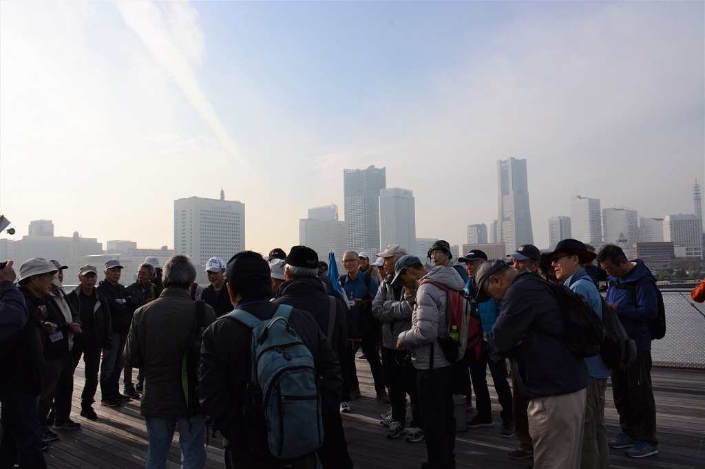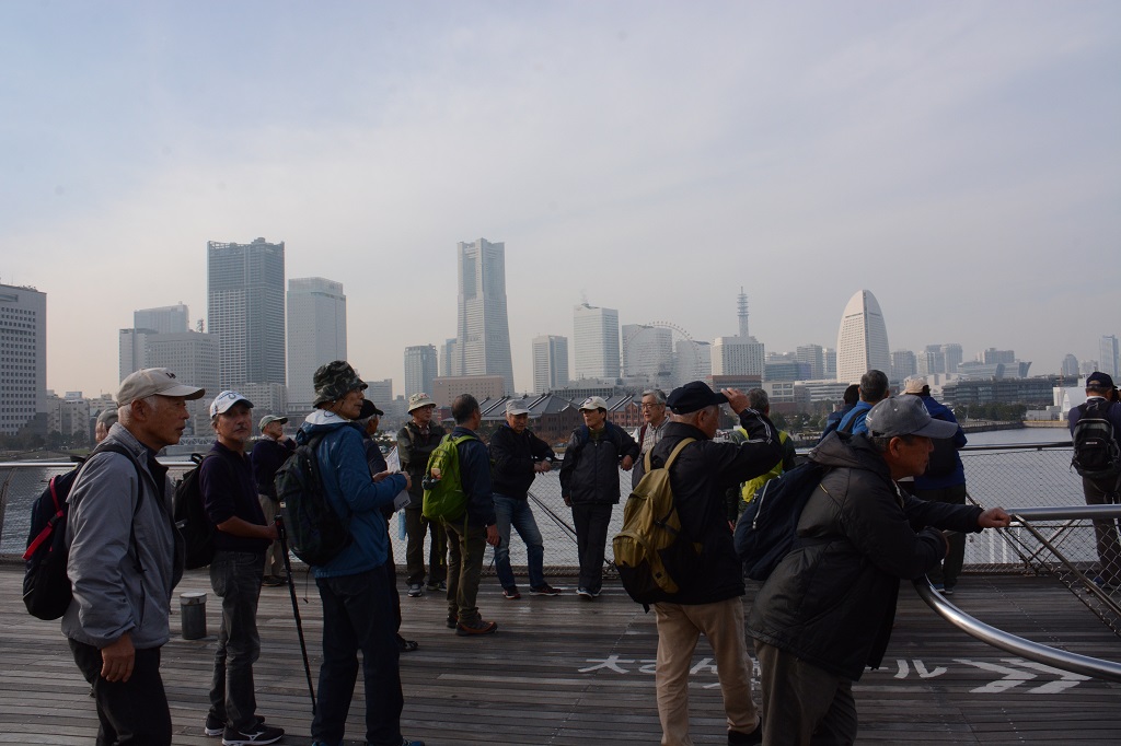 - みなとみらいをバックに2019年歩こう会最後の集合写真