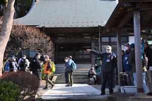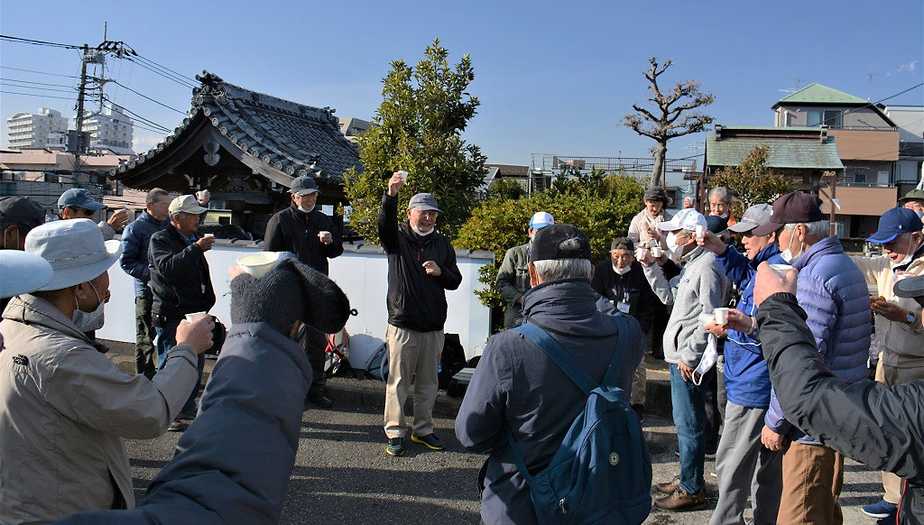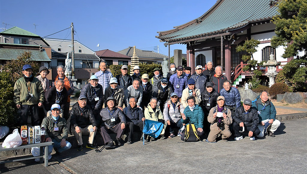 妙秀寺での解散ミーティングで、皆勤表彰者の一人である村松文夫さんが大晦日に逝去されたことを発表しました。12月の歩こう会では普通に会話していた人が亡くなってしまった実感がまだありません。急な逝去でご家族の悲しみやご苦労は大変なこととお察し致します。謹んでお悔やみ申し上げます。