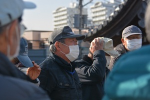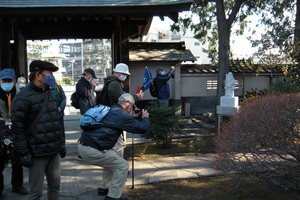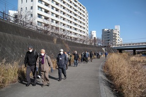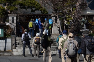 2021年の湘南歩こう会歩き初めは、快晴の天気に恵まれましたが、翌日(1月8日)には1都3県に緊急事態宣言が発令されるギリギリの状態での実施でした。今年の七福神巡りは密になるのを避けるために、朱印スタンプは置かず目印の旗も立てないという分散参拝奨励の影響で、他の参拝客と遭遇したのは雲林寺(恵比寿)だけでした。また爆弾低気圧通過の影響で強風が吹いていたため、川沿いや陸橋では帽子が飛ばされそうで、特に昼食休憩の矢部柳作公園では砂塵が舞い上がって食べるのに苦労しました。