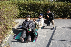 解散ミーティング,皆勤表彰,酒肴の場として、境内駐車場の使用を快諾して頂きました妙秀寺のご住職には、改めてお礼申し上げます。新型コロナウイルス感染拡大が収束するまで、無理はせず健康・安全を最優先に考慮した歩こう会を実施しますので、皆さんの歩こう会参加とご支援をよろしくお願い致します。
