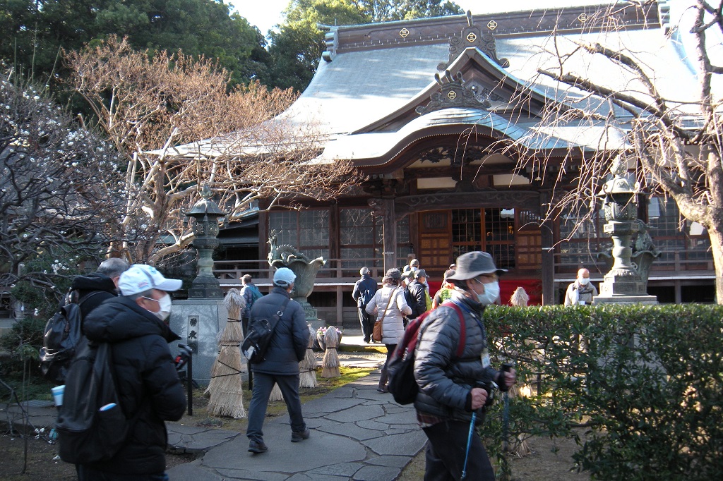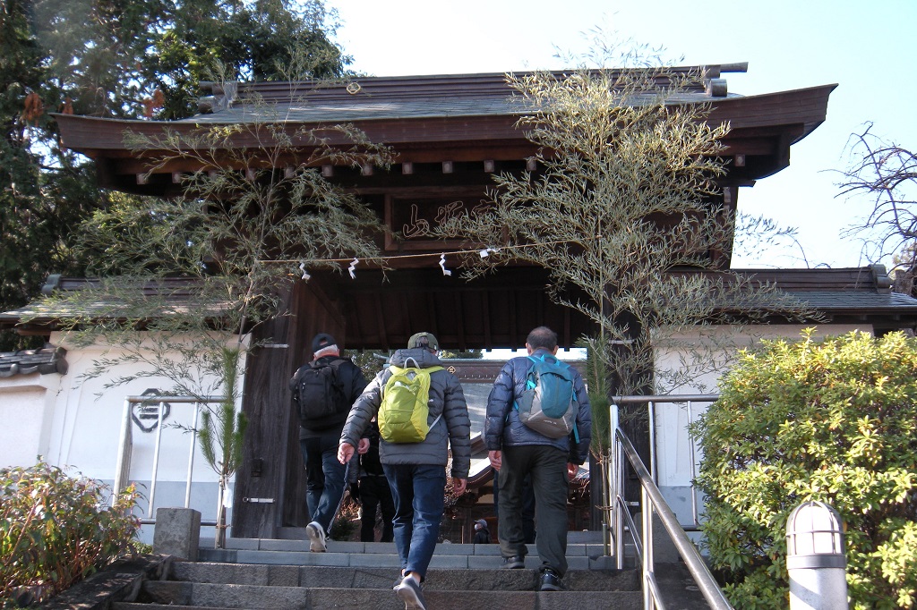 2021年の湘南歩こう会歩き初めは、快晴の天気に恵まれましたが、翌日(1月8日)には1都3県に緊急事態宣言が発令されるギリギリの状態での実施でした。今年の七福神巡りは密になるのを避けるために、朱印スタンプは置かず目印の旗も立てないという分散参拝奨励の影響で、他の参拝客と遭遇したのは雲林寺(恵比寿)だけでした。また爆弾低気圧通過の影響で強風が吹いていたため、川沿いや陸橋では帽子が飛ばされそうで、特に昼食休憩の矢部柳作公園では砂塵が舞い上がって食べるのに苦労しました。