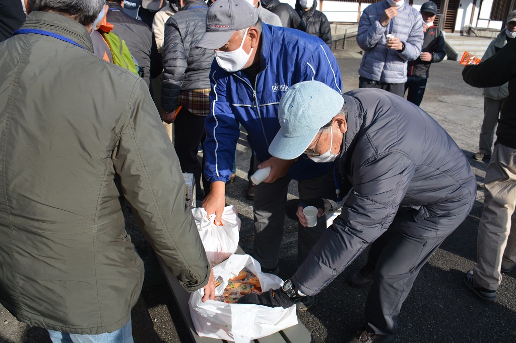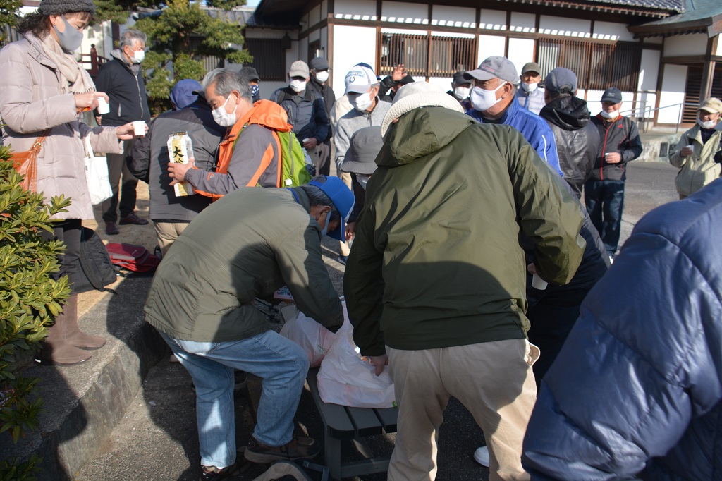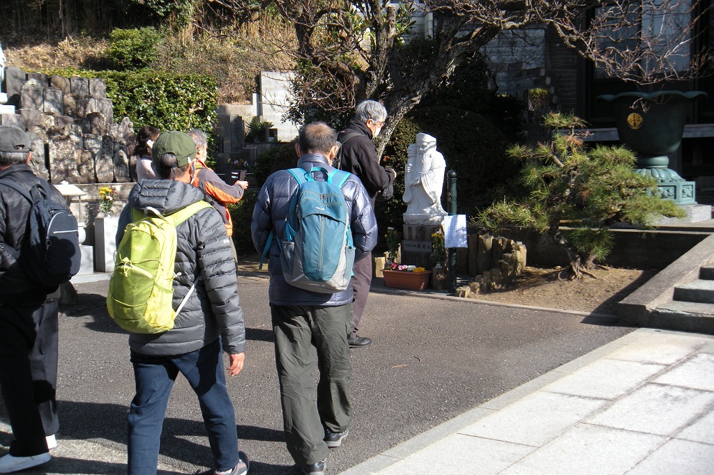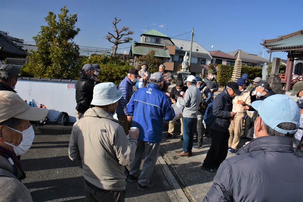 妙秀寺での解散ミーティングで、皆勤表彰者の一人である村松文夫さんが大晦日に逝去されたことを発表しました。12月の歩こう会では普通に会話していた人が亡くなってしまった実感がまだありません。急な逝去でご家族の悲しみやご苦労は大変なこととお察し致します。謹んでお悔やみ申し上げます。