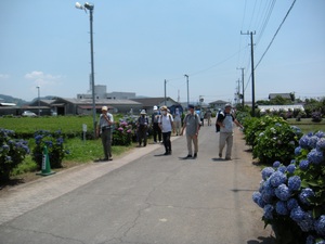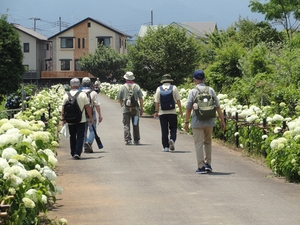 2020年度「湘南歩こう会」年間計画の最後のプログラムは、新型コロナウイルス感染拡大の影響を受けコース変更して、開成町のあじさい見学をメインに実施しました。真夏日となり殆ど日陰のないコースなため、熱中症対策には十分留意致しましたが、開成駅近くの公園での解散後、参加者1名がダウンし小田原市内の病院に救急搬送されたと連絡が入りました。病院で色々な検査を受けた結果、熱中症だと診断されました。手当を受けて病院に駆けつけた奥様と共に帰宅されたのは、大事に至らず不幸中の幸いでした。平均年齢が70歳を超えた集団の夏場の屋外行動は、新型コロナウイルス感染のリスクよりも大きいと感じました。8月,9月の実施時もまだ真夏日の可能性が高いですが、その頃にはコロナワクチンを2回あるいは最低1回は接種しているはずなので、熱中症対策に重点を置いた運営を心掛けたいと肝に銘じています。参加された皆さん大変お疲れ様でした。