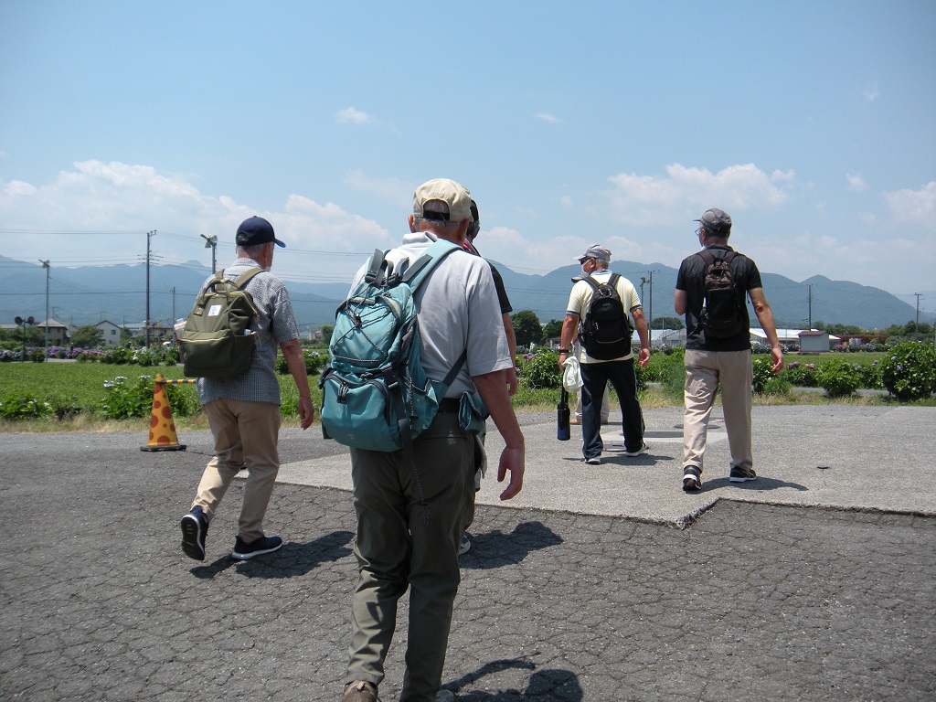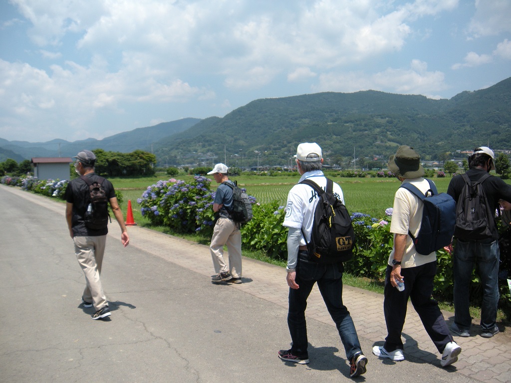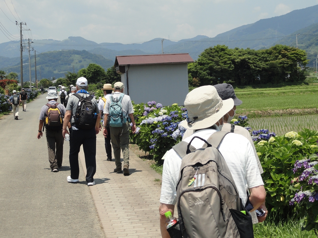 2020年度「湘南歩こう会」年間計画の最後のプログラムは、新型コロナウイルス感染拡大の影響を受けコース変更して、開成町のあじさい見学をメインに実施しました。真夏日となり殆ど日陰のないコースなため、熱中症対策には十分留意致しましたが、開成駅近くの公園での解散後、参加者1名がダウンし小田原市内の病院に救急搬送されたと連絡が入りました。病院で色々な検査を受けた結果、熱中症だと診断されました。手当を受けて病院に駆けつけた奥様と共に帰宅されたのは、大事に至らず不幸中の幸いでした。平均年齢が70歳を超えた集団の夏場の屋外行動は、新型コロナウイルス感染のリスクよりも大きいと感じました。8月,9月の実施時もまだ真夏日の可能性が高いですが、その頃にはコロナワクチンを2回あるいは最低1回は接種しているはずなので、熱中症対策に重点を置いた運営を心掛けたいと肝に銘じています。参加された皆さん大変お疲れ様でした。