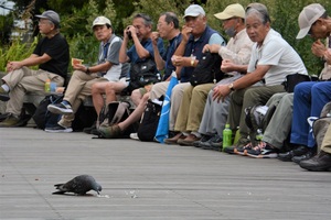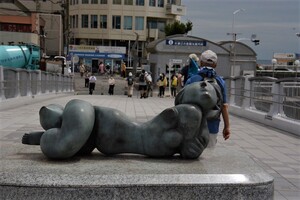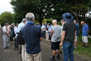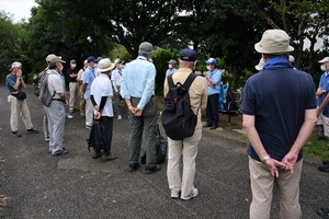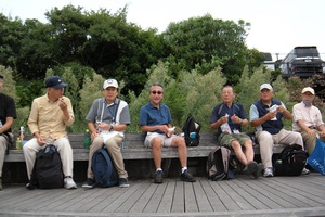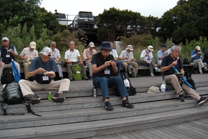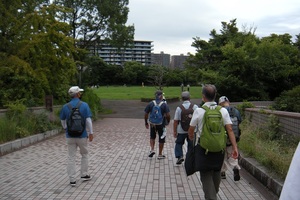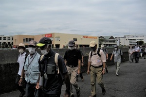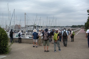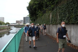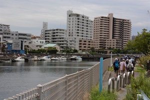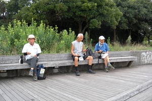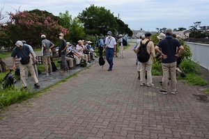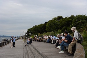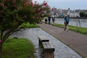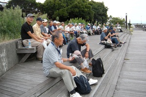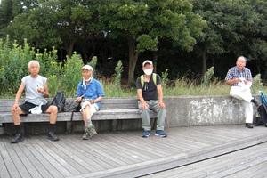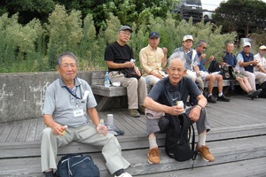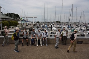 一週間前の天気予報は傘マークがあり開催が心配されましたが、当日は曇りで気温も30℃まで届かず安心して36名(下見時6名含む)開催できました。境川沿いに江ノ島に向けて南風に吹かれながら南下しました。江ノ島に到着しオリンピック記念噴水池隣接のロングベンチの設置されたウッドデッキを歩こう会で独占し、片瀬海岸東浜を眺望しながら昼食休憩をとりました。昼食後は普段行かないヨットハーバーの見物で、海風に吹かれながら2回の東京オリンピックセーリング開催場所を巡りました。真夏の潮風ウォーキングは満足してもらえたでしょうか。