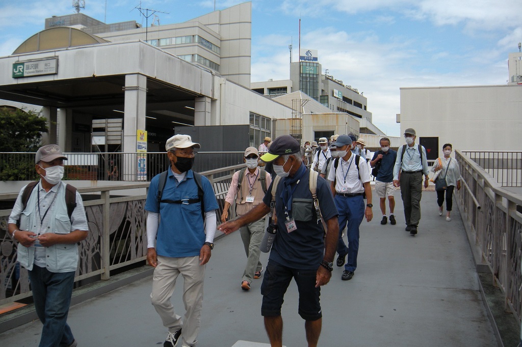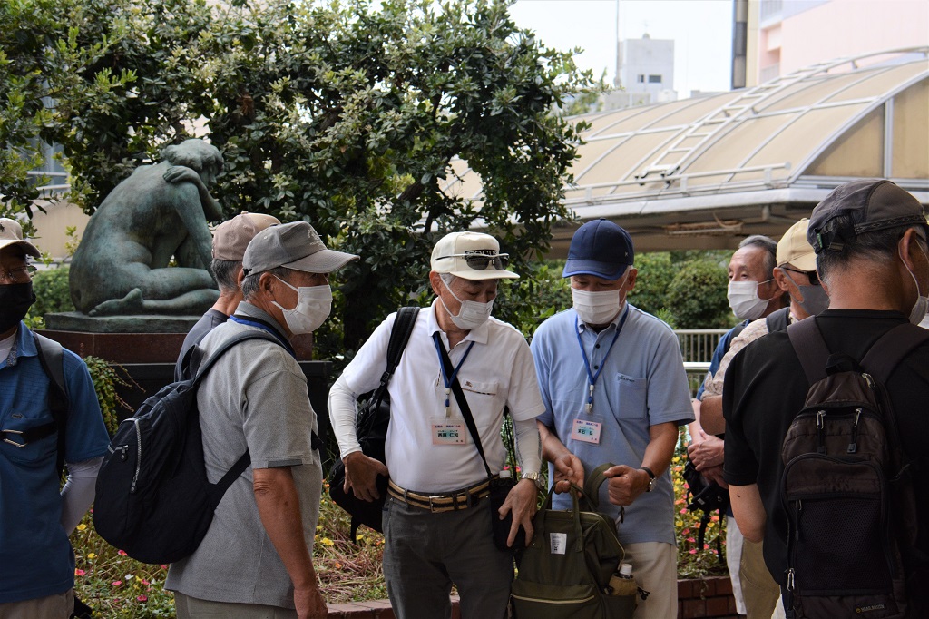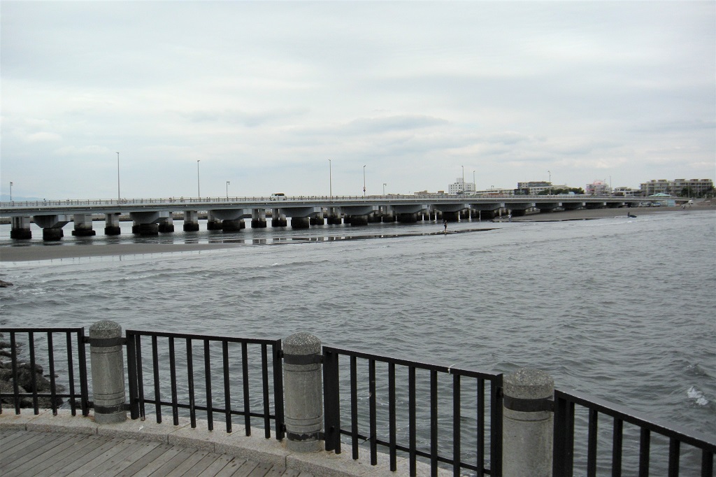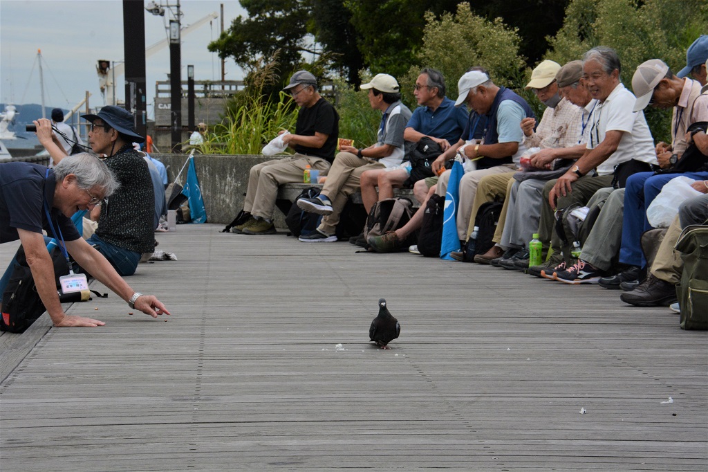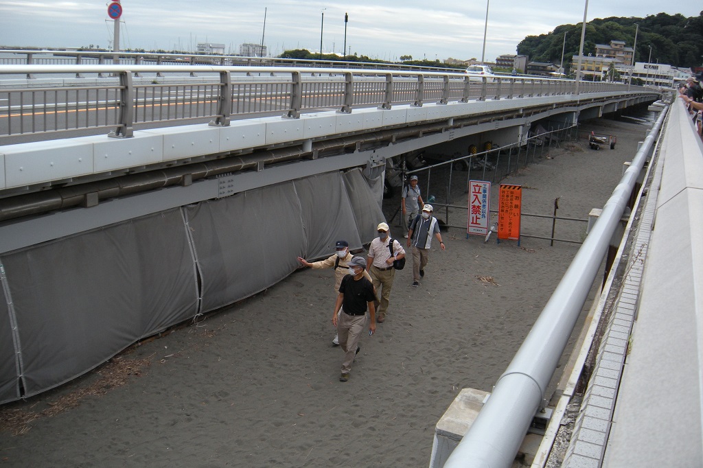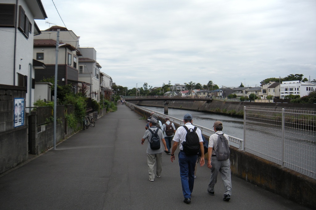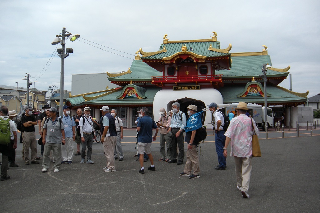 一週間前の天気予報は傘マークがあり開催が心配されましたが、当日は曇りで気温も30℃まで届かず安心して36名(下見時6名含む)開催できました。境川沿いに江ノ島に向けて南風に吹かれながら南下しました。江ノ島に到着しオリンピック記念噴水池隣接のロングベンチの設置されたウッドデッキを歩こう会で独占し、片瀬海岸東浜を眺望しながら昼食休憩をとりました。昼食後は普段行かないヨットハーバーの見物で、海風に吹かれながら2回の東京オリンピックセーリング開催場所を巡りました。真夏の潮風ウォーキングは満足してもらえたでしょうか。
