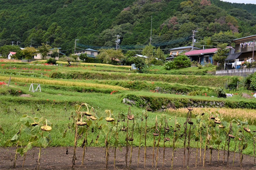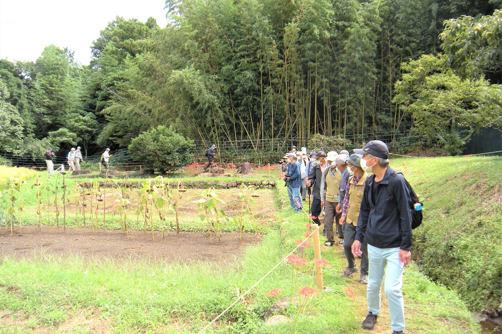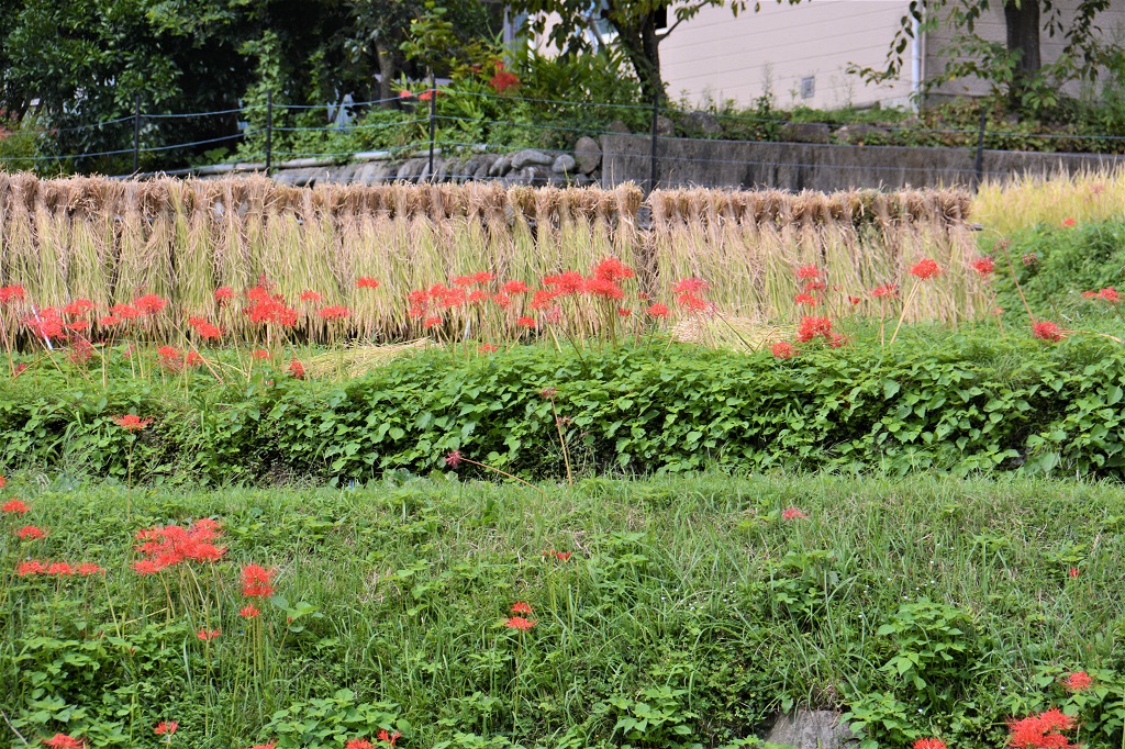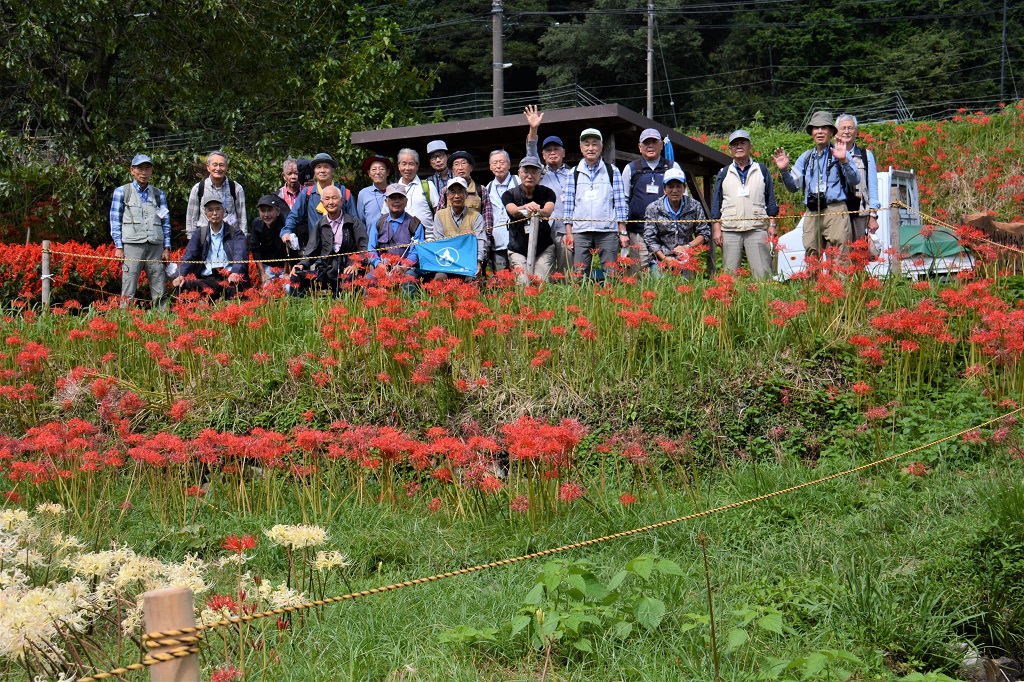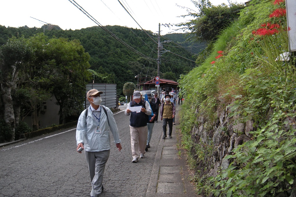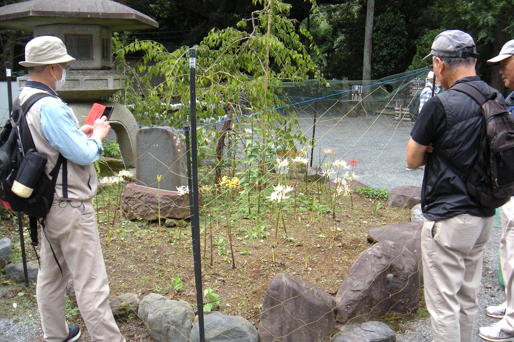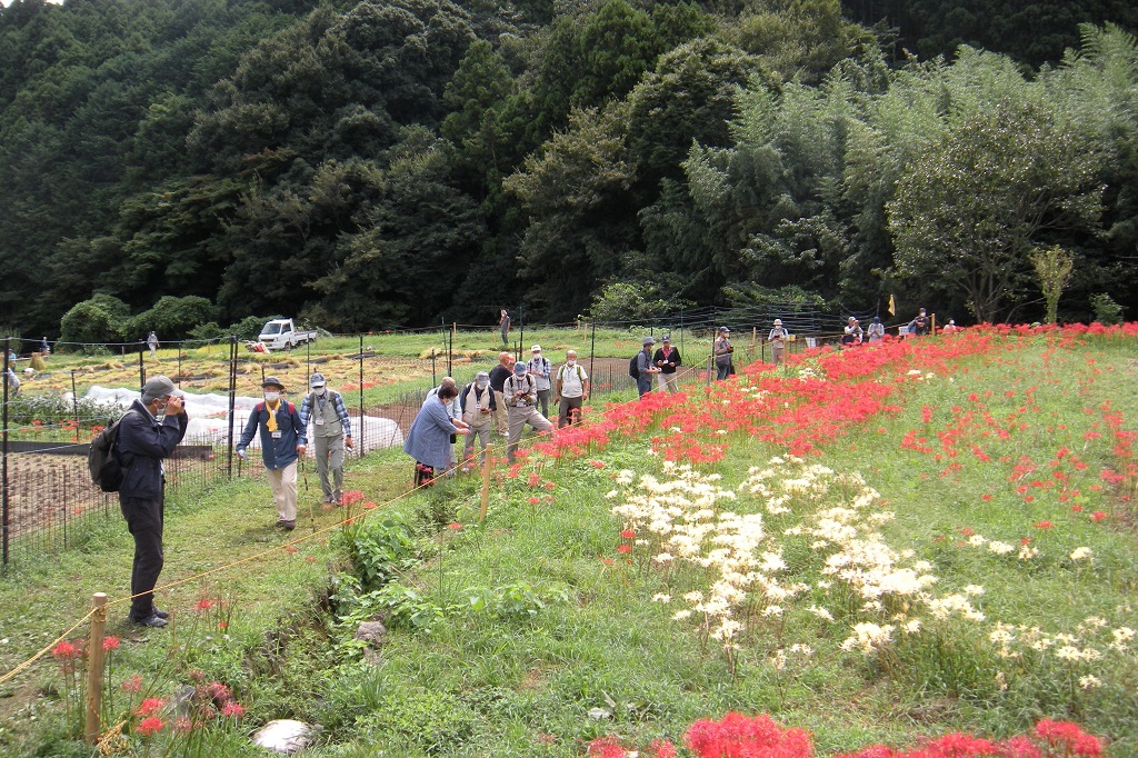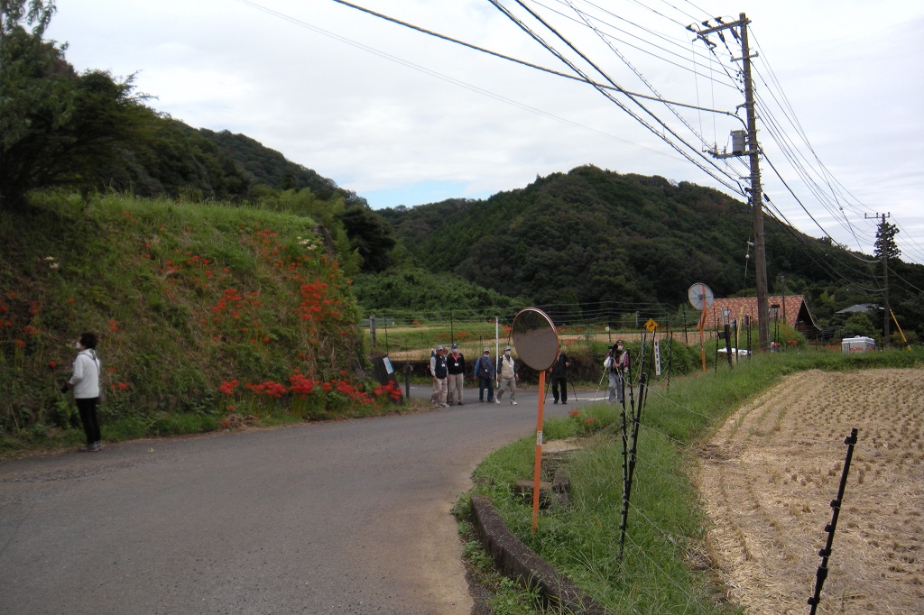 一昨年(台風),昨年(コロナ禍)はやむを得ず中止にしましたが、今年は29名(下見時5名含む)の参加で2年越しの開催となりました。天候に不安がありましたが帰りの石雲寺から日向薬師バス停までの間に霧雨が降る程度で済みました。日向地区の彼岸花は水田の畦道に群生しているので、時期的に刈り取り前の稲穂や刈り取られて天日干しされている稲穂さらに枯れて下を向いているヒマワリの花など、都市部では見られない原風景を久しぶりに満喫しました。彼岸花は普段赤色しか見ていないので、白色や黄色を見て新鮮な驚きでした。次回は雨で中止となった2018年の前小松コスモス園へのウォーキングですが、3年越しの無事開催を祈るばかりです。