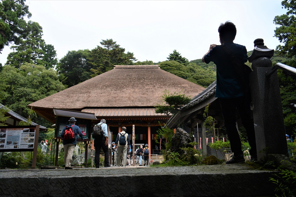 - 日向薬師はきれいな茅葺屋根の本堂です