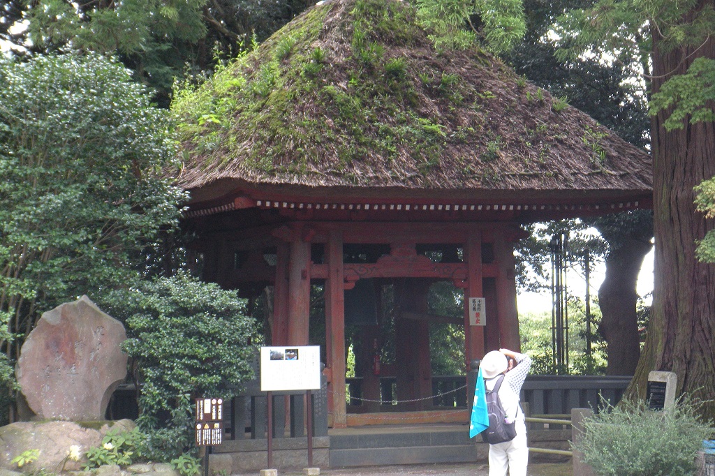 - 鐘撞堂の茅葺屋根には雑草が‥