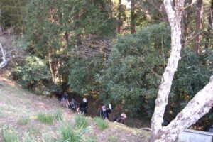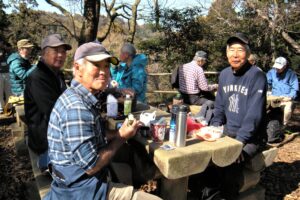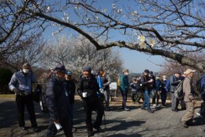 1月に続き快晴に恵まれ46名(下見時5名含む)の参加で実施しました。田浦梅の里展望台までは緩斜面の上り行程でしたが、下見時に上った男坂ではなく女坂を選択したため途中小休止することなく上ることができました。下見の時に得られた情報はいかに大事な物かと改めて気付かされました。展望台あたりから横須賀港はハッキリ眺望できましたが、房総半島は残念ながら霞んでいました。梅開花状況も異常な寒波が何度か来たおかげで、満開状態とはいきませんでした。午後から訪れた池子の森自然公園は、旧日本海軍の弾薬庫跡を在日米軍から返還された地であり、現在も隣接して米軍の家族住宅があります。フェンス一枚隔てて外国です。2020年12月の歩こう会(逗子やまなみの道ウォーキング)では、この池子の森自然公園と米軍住宅の周囲を巡る尾根伝いを歩きました。いつまでも人の手を加えず自然の状態で保存してもらいたいものです。