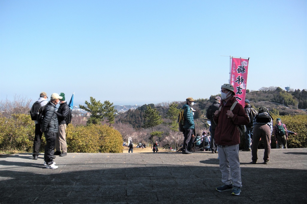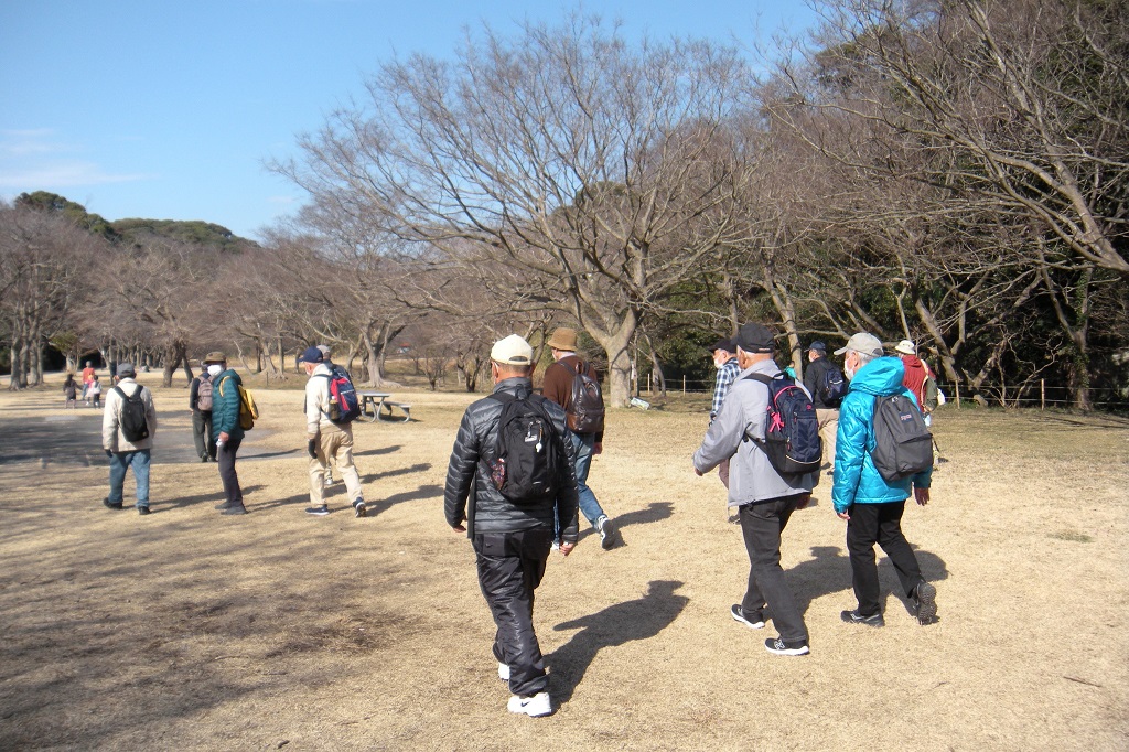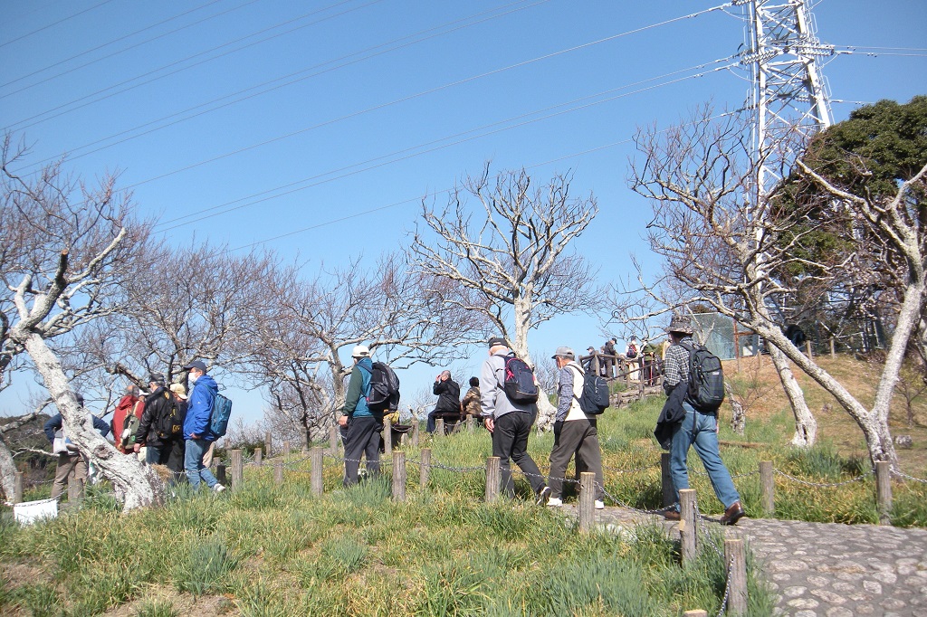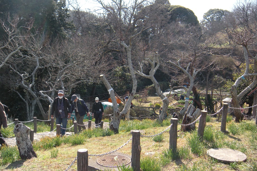 1月に続き快晴に恵まれ46名(下見時5名含む)の参加で実施しました。田浦梅の里展望台までは緩斜面の上り行程でしたが、下見時に上った男坂ではなく女坂を選択したため途中小休止することなく上ることができました。下見の時に得られた情報はいかに大事な物かと改めて気付かされました。展望台あたりから横須賀港はハッキリ眺望できましたが、房総半島は残念ながら霞んでいました。梅開花状況も異常な寒波が何度か来たおかげで、満開状態とはいきませんでした。午後から訪れた池子の森自然公園は、旧日本海軍の弾薬庫跡を在日米軍から返還された地であり、現在も隣接して米軍の家族住宅があります。フェンス一枚隔てて外国です。2020年12月の歩こう会(逗子やまなみの道ウォーキング)では、この池子の森自然公園と米軍住宅の周囲を巡る尾根伝いを歩きました。いつまでも人の手を加えず自然の状態で保存してもらいたいものです。