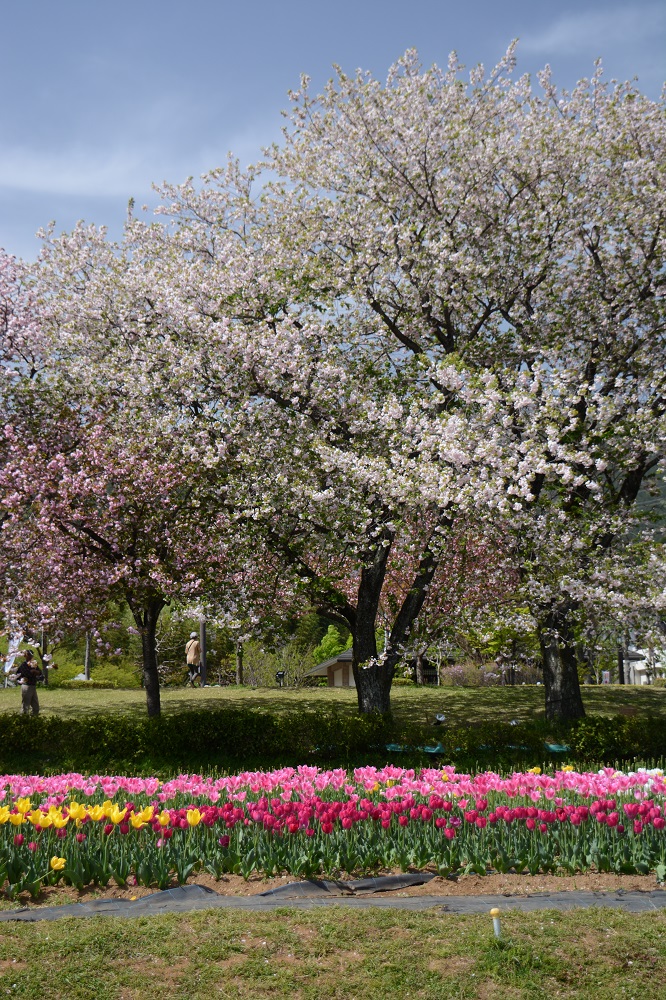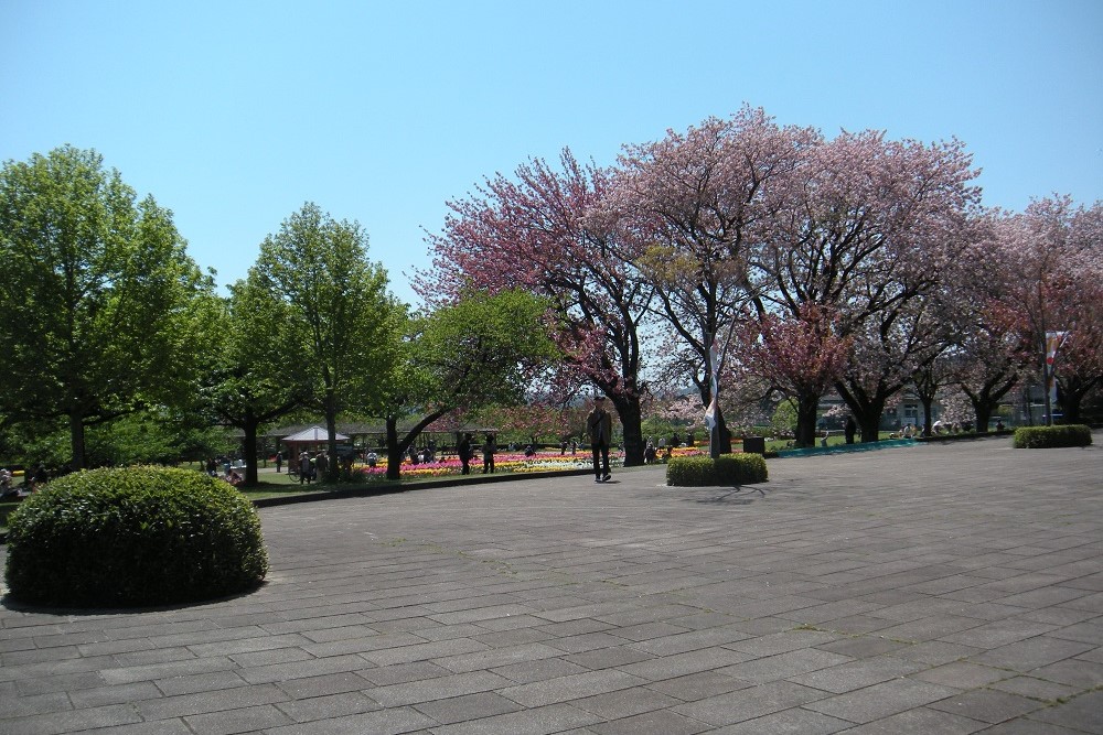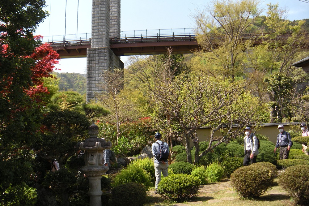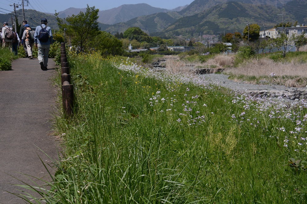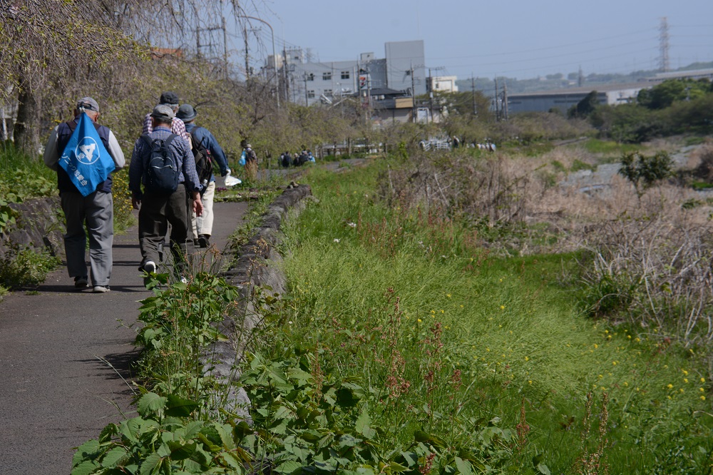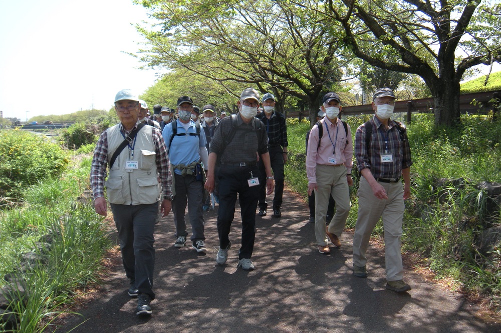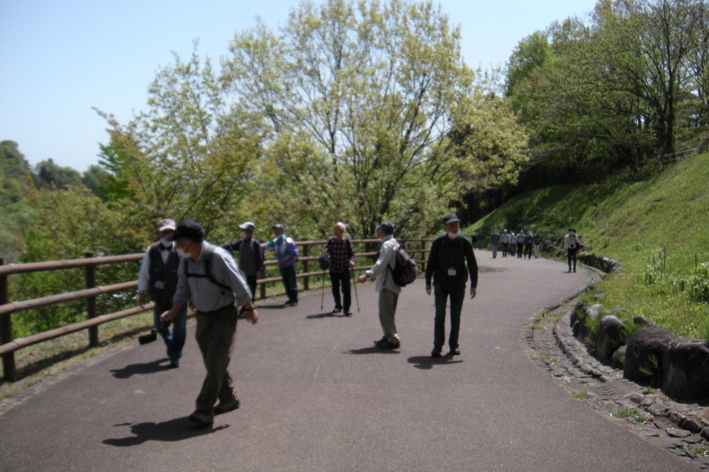 快晴の青空の下に41名(下見時6名含む)が集まり、小田急渋川駅から桜土手古墳公園・はだの歴史博物館を見学し、水無川河川敷(ハイキングコースが整備)を上流に向かって歩き県立秦野戸川公園でチューリップと八重桜及び風光明媚な景色を堪能しました。黄砂飛来の天気予報でしたが、歩いている時にはその影響は全く感じられませんでした。戸川公園は下見が4日前の日曜日でしたので多くの家族連れで賑わっていましたが、本番は平日でしたのでかなりゆったりと見物できました。球根を取るために少し早く咲いたチューリップは花が切り取られている花壇も少しありましたが、それでも色とりどりのチューリップが楽しめました。また、風の吊り橋を渡った対岸の日本庭園では、御衣黄桜(ギョイコウザクラ)という淡緑色の花の珍しい桜を見ることができました。最も知らなければ目立たないので見過ごしてしましますけど。桜土手古墳公園前の水無川は川面に水が全く流れてなく(普段川の地面の下を流れているそうです)、上流の公園が近くなると水が現れてくるのは水無川の名前の由縁が理解できました。