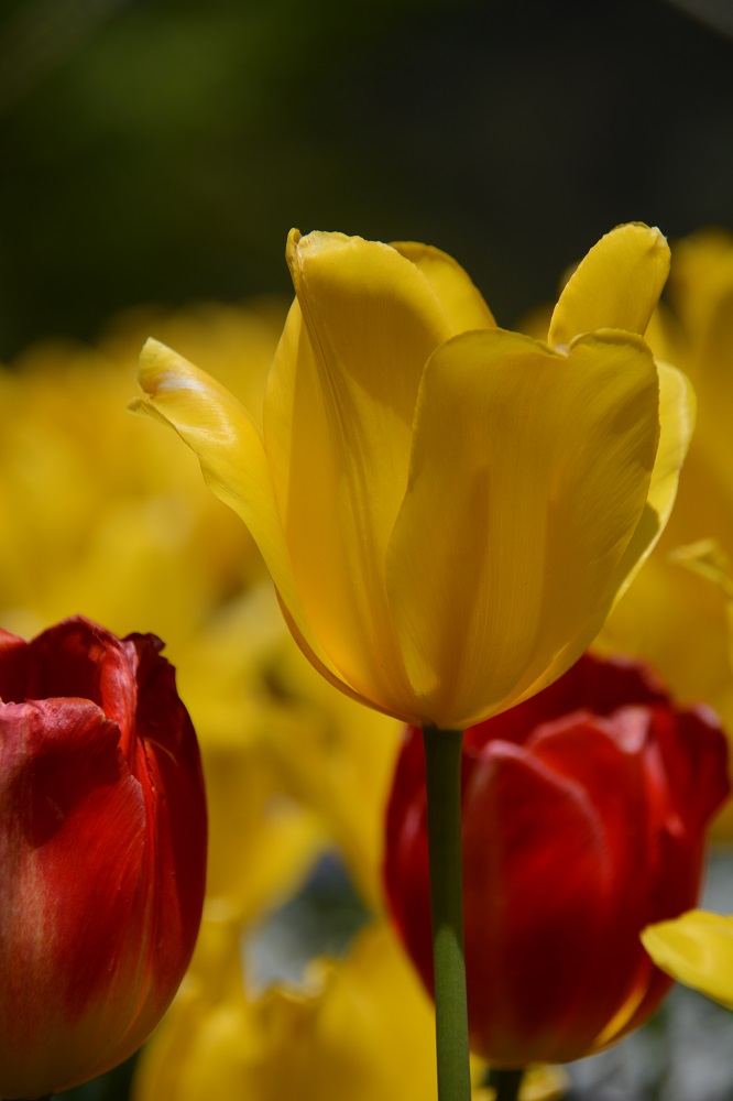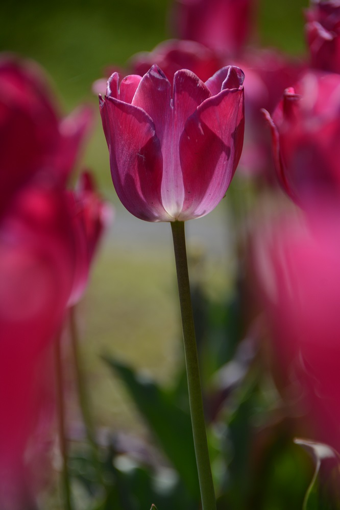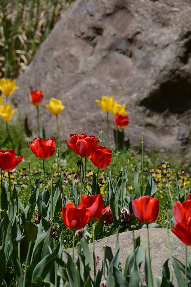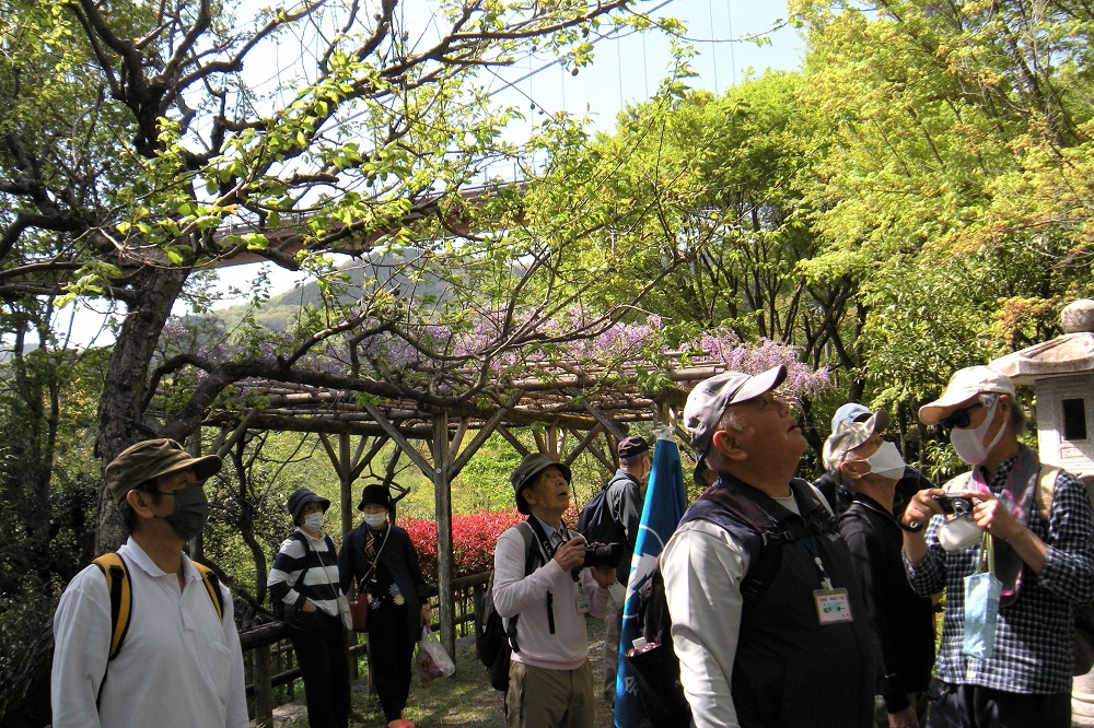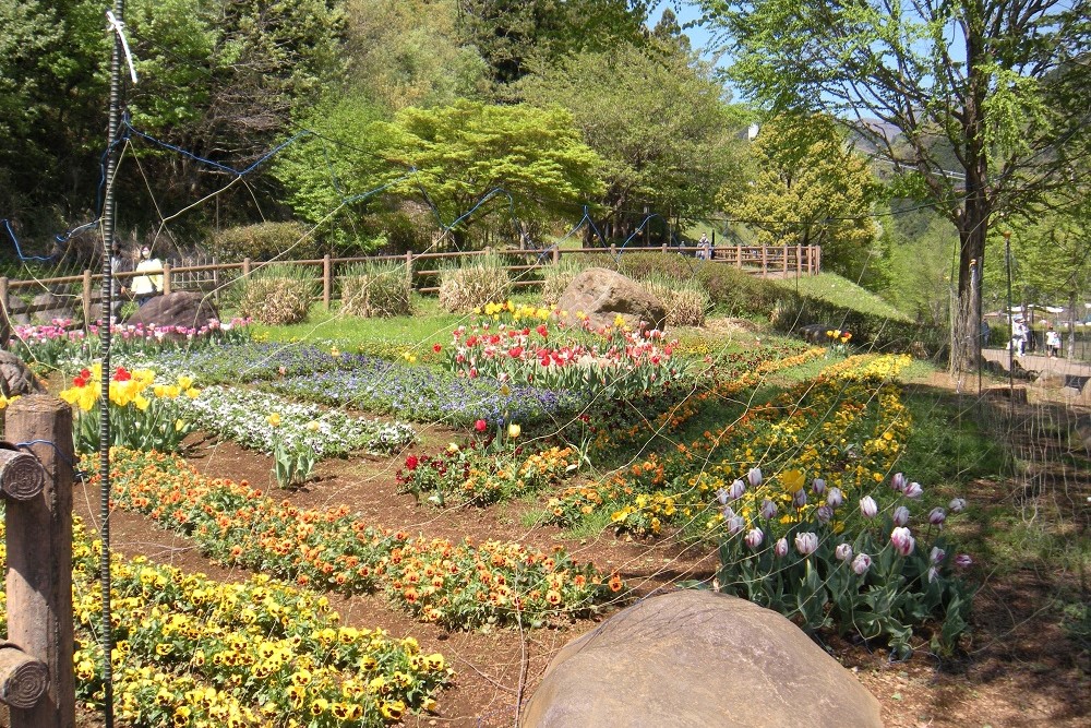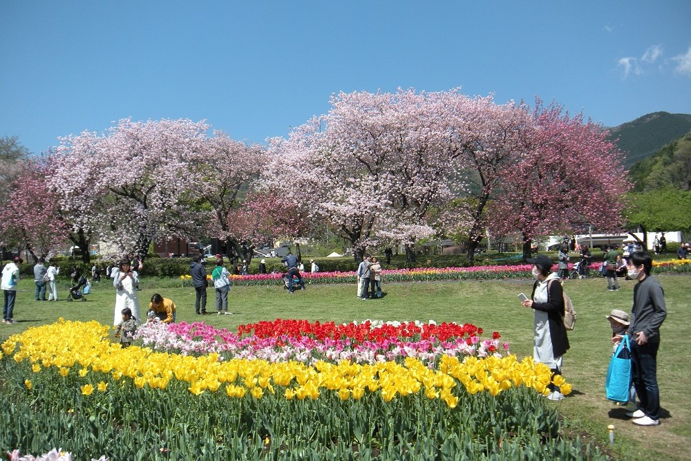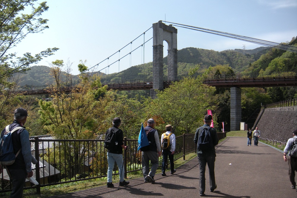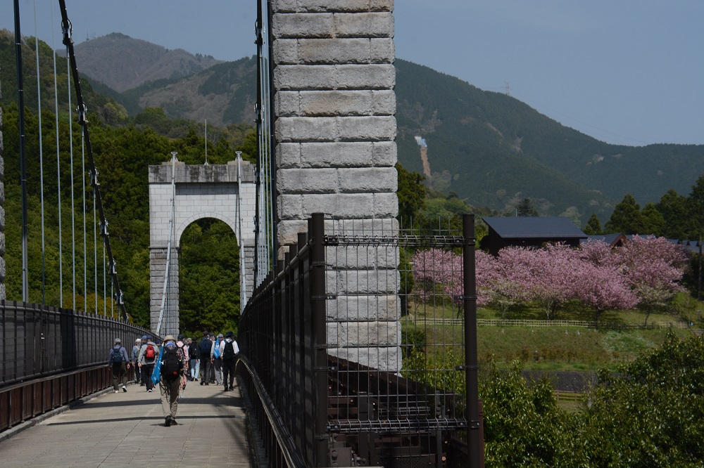 快晴の青空の下に41名(下見時6名含む)が集まり、小田急渋川駅から桜土手古墳公園・はだの歴史博物館を見学し、水無川河川敷(ハイキングコースが整備)を上流に向かって歩き県立秦野戸川公園でチューリップと八重桜及び風光明媚な景色を堪能しました。黄砂飛来の天気予報でしたが、歩いている時にはその影響は全く感じられませんでした。戸川公園は下見が4日前の日曜日でしたので多くの家族連れで賑わっていましたが、本番は平日でしたのでかなりゆったりと見物できました。球根を取るために少し早く咲いたチューリップは花が切り取られている花壇も少しありましたが、それでも色とりどりのチューリップが楽しめました。また、風の吊り橋を渡った対岸の日本庭園では、御衣黄桜(ギョイコウザクラ)という淡緑色の花の珍しい桜を見ることができました。最も知らなければ目立たないので見過ごしてしましますけど。桜土手古墳公園前の水無川は川面に水が全く流れてなく(普段川の地面の下を流れているそうです)、上流の公園が近くなると水が現れてくるのは水無川の名前の由縁が理解できました。