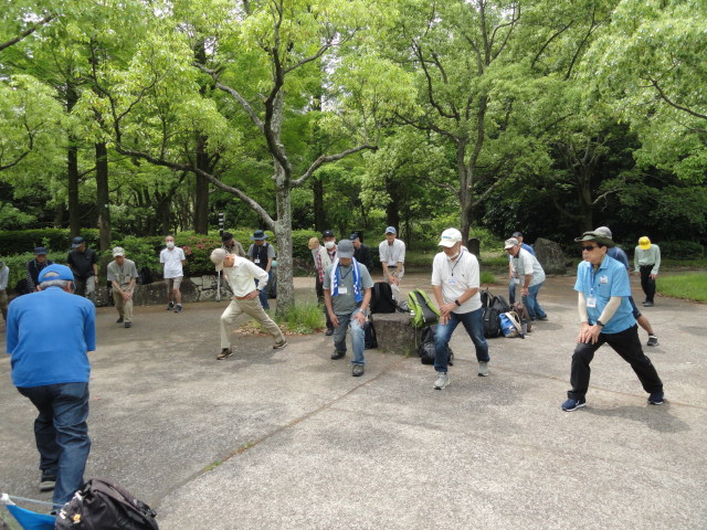 ⇒富岡八幡公園・富岡八幡宮(ウォーキング,開始ミーティング,準備運動,八幡宮参拝)