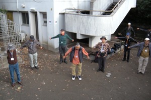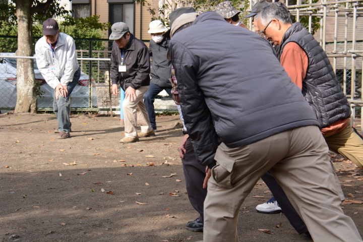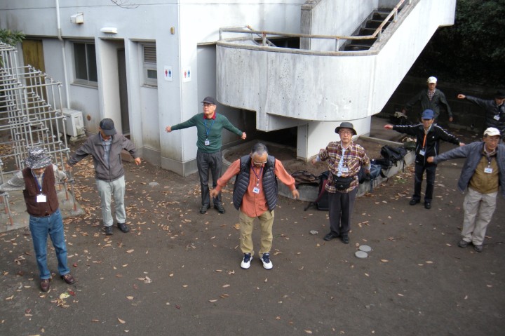 (2)住宅地の小公園へ … ミーティング・準備体操