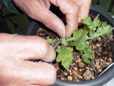 - 下の方の葉を細いハサミで切り取る