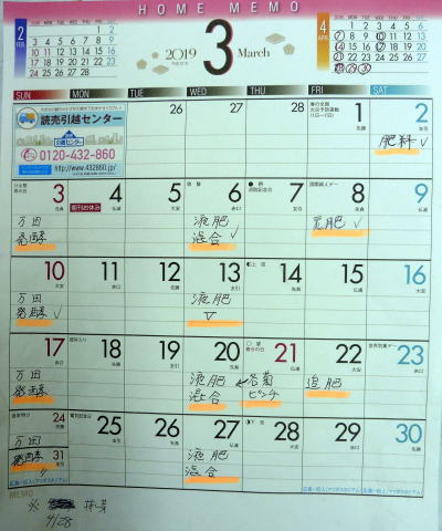 - 毎月のカレンダーに記入