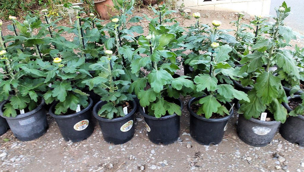 ・Aさん:10月19日、30鉢育成中。蕾は大きいもので 直径=22mm、バラツキはあるが昨年よりやや遅い気がします。花は少し小さいか?