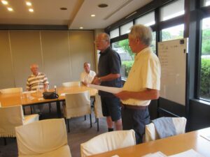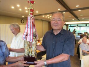 前回大会(6月2日、大熱海国際GC)は大雨のため中止になりました。今回は9月15日、小田原湯本GCで184回大会として開催しました。 猛暑の中での大会で、熱中症が心配されましたが、無事開催できました。 優勝者は高寺賢さんでした。