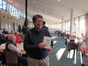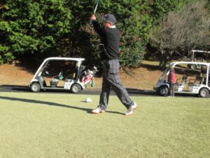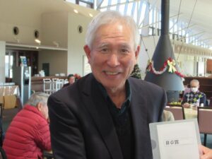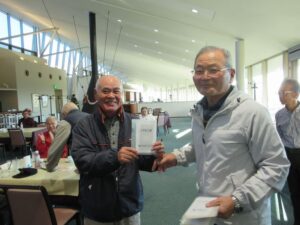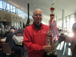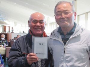 熱海コースは初めてのコースでしたが、距離も短く、比較的易しいコースと幹事(坊木)は案内しましたが、当日は寒さも加わり、コース設定が難しく、皆さん攻略にかなり苦戦されていました。(申し訳ありませんでした)そんな中、優勝は浦田米蔵さんでした。浦田さんは松愛会湘南支部長で久しぶりのご参加でしたが、見事優勝されました。おめでとうございます。そして3位の大字進さんですが、今年80歳で、シニアティーから打てるのですが、頑なにレギュラーティーから打たれます。そんな条件で見事な成績で3位入賞されました。お見事でした。 寒い中でのプレーでしたが、全員無事完走されました。