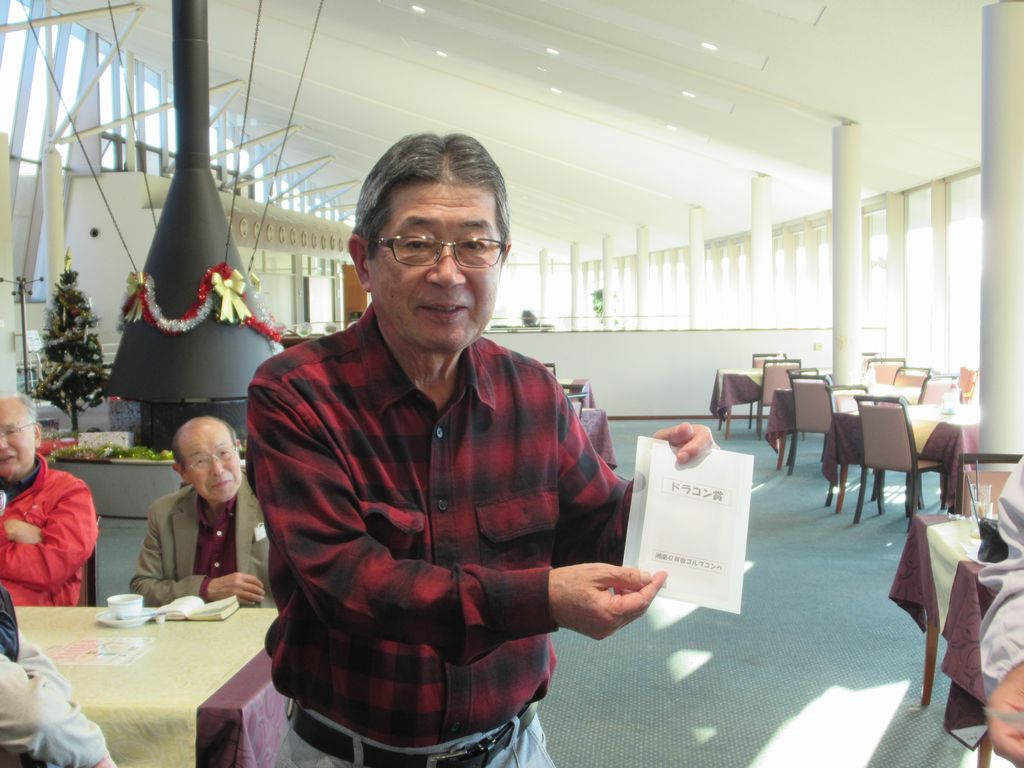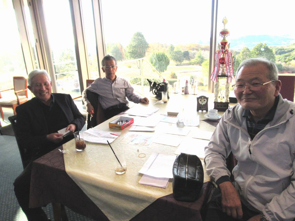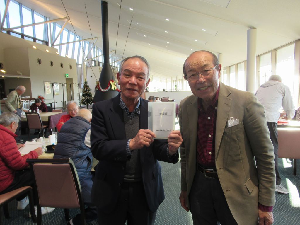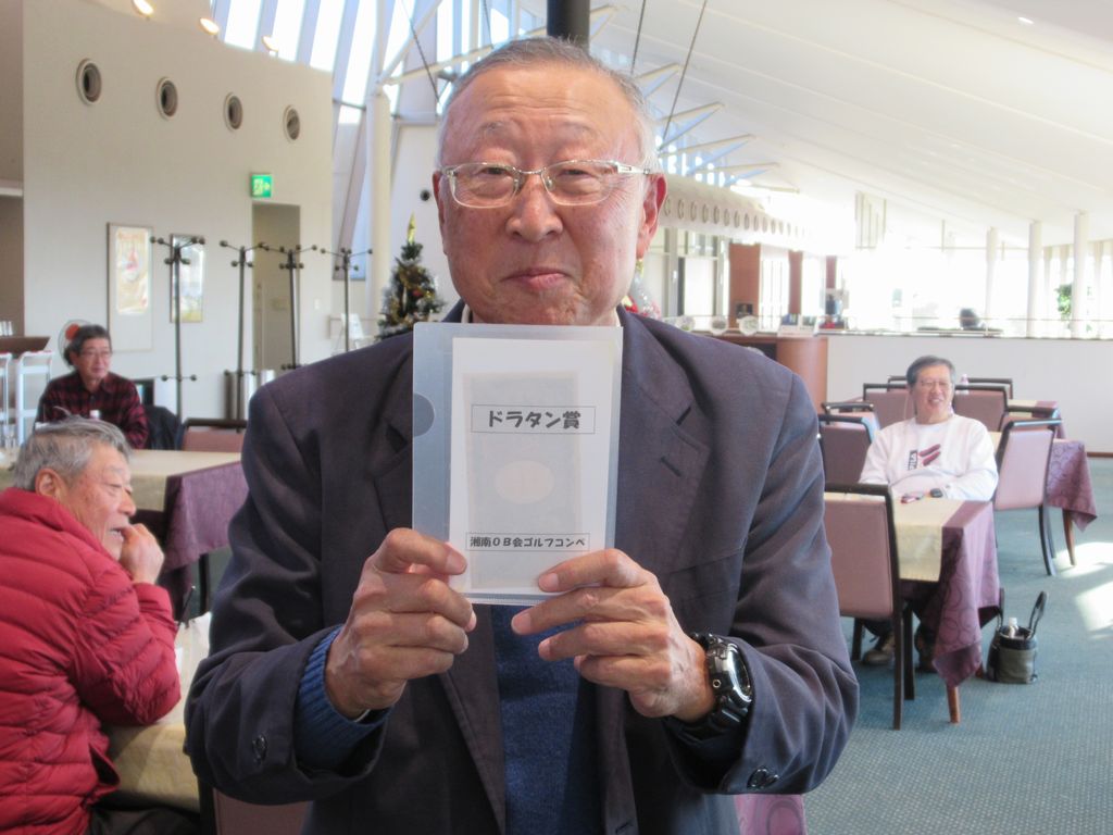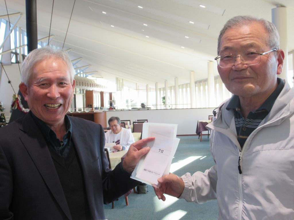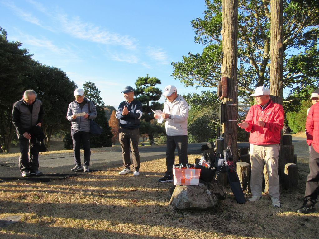熱海コースは初めてのコースでしたが、距離も短く、比較的易しいコースと幹事(坊木)は案内しましたが、当日は寒さも加わり、コース設定が難しく、皆さん攻略にかなり苦戦されていました。(申し訳ありませんでした)そんな中、優勝は浦田米蔵さんでした。浦田さんは松愛会湘南支部長で久しぶりのご参加でしたが、見事優勝されました。おめでとうございます。そして3位の大字進さんですが、今年80歳で、シニアティーから打てるのですが、頑なにレギュラーティーから打たれます。そんな条件で見事な成績で3位入賞されました。お見事でした。 寒い中でのプレーでしたが、全員無事完走されました。