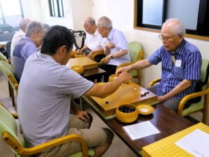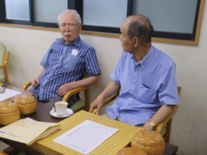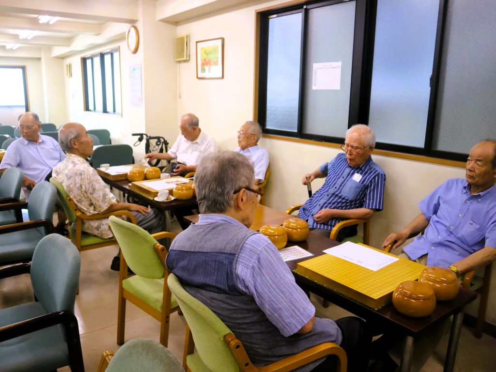 猛暑が続いたこの日12名の松愛会囲碁クラブの会員が茅ヶ崎駅近くの”囲碁クラブ21″に集合して、夏の囲碁大会が実施された。横浜に転居された聖成様もはるばるご参加頂き盛大な囲碁会となった。会場の囲碁クラブ21は通常午後にオープンとなるのが、午前はわが囲碁クラブのために特別に開かれているので午前中は貸し切り状態でした。