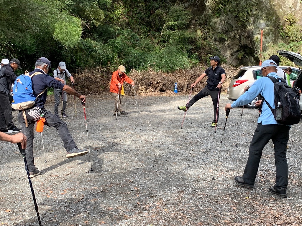 ポールストレッチ体操及び歩行練習を行ってから予定したコースのポールウォーキングを開始しました。